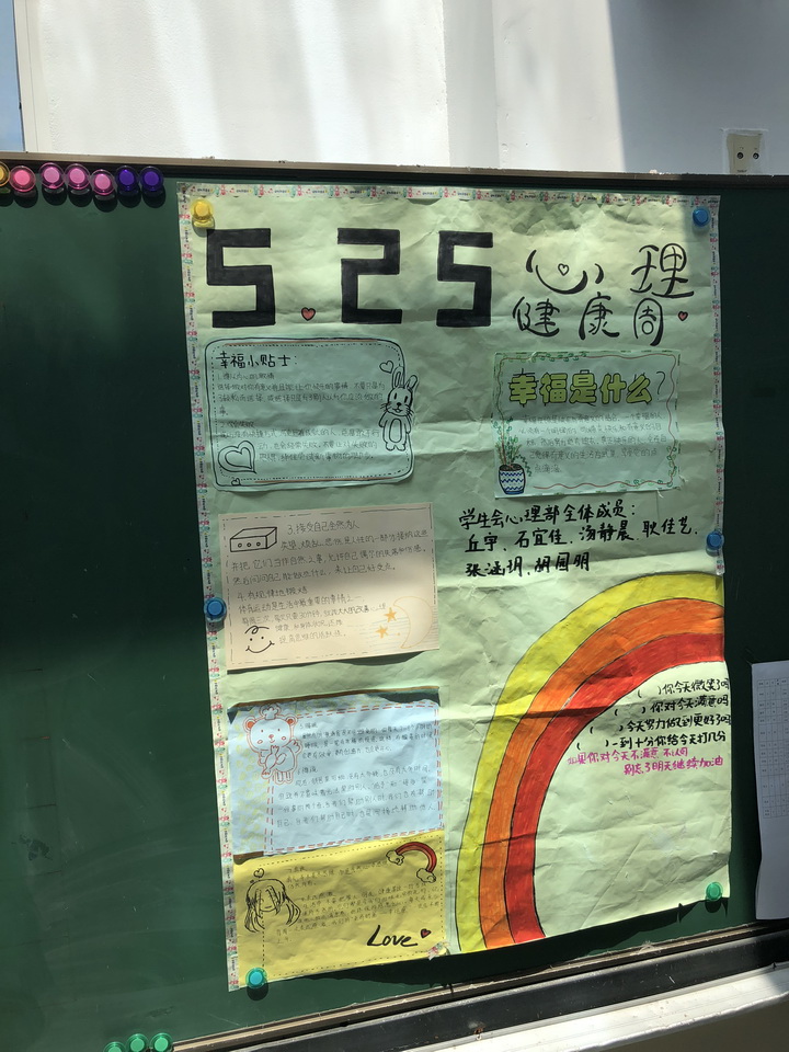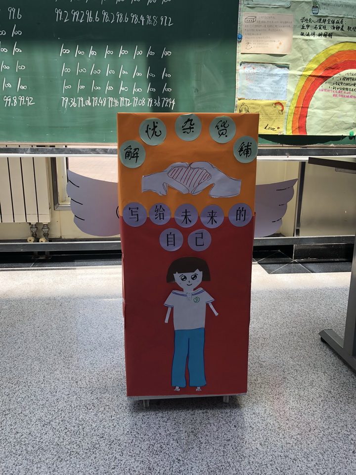 5月28日升旗仪式上,学生会心理部的石宜佳同学进行了以“制定目标 快乐成长”为主题的国旗下讲话,对于5·25心理健康节的意义以及即将举行的活动进行了介绍。每天中午开展的“解忧杂货铺”活动,学生把写给未来的一封信投到信箱中,由学校心理咨询室负责保存,等待同学们多年后取回自己的信。周一、周三、周五中午在阶梯教室进行了积极乐观心理剧展演,本剧讲述了如何用SMART目标分解法制定目标,如何应对目标实现过程中的困难,最后体验到梦想实现的成就感。
