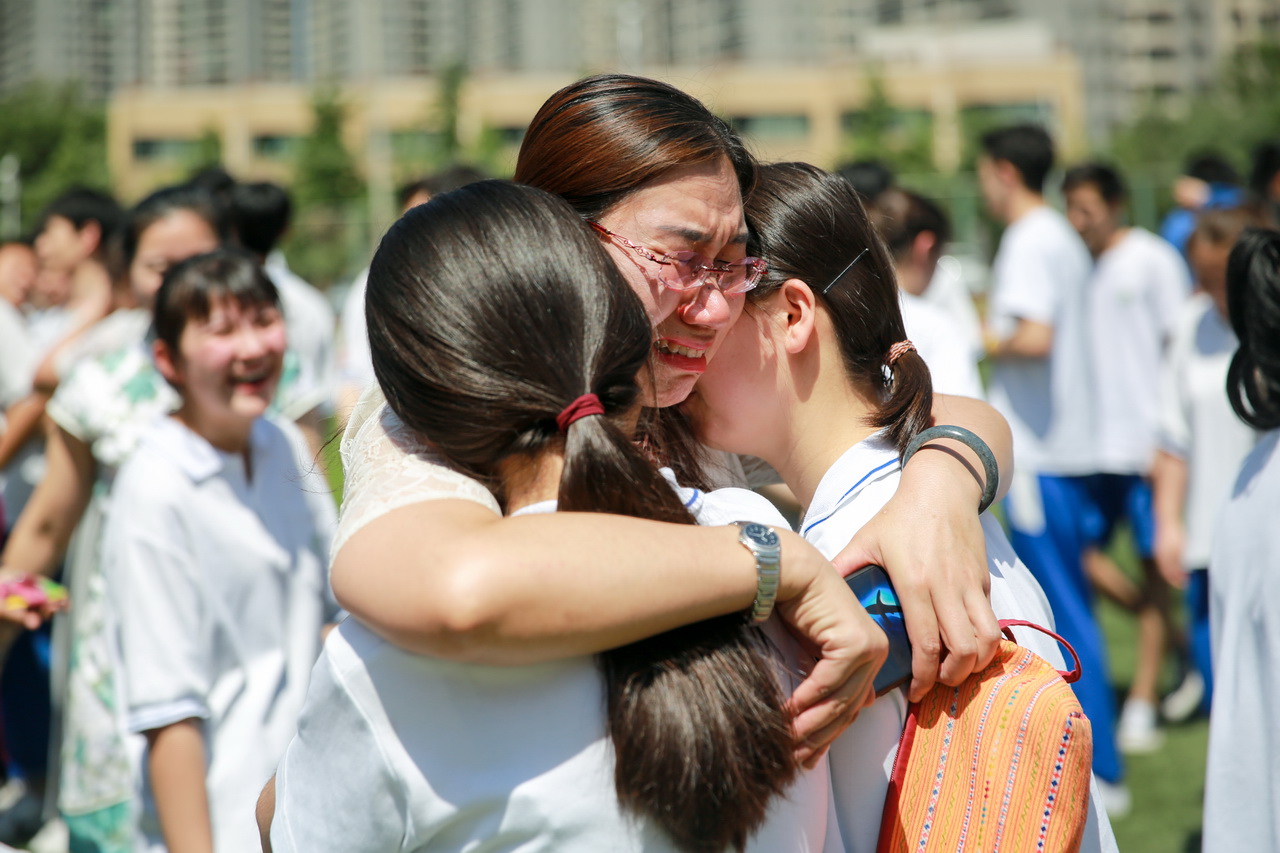 最后,学校全体行政干部、高三教师和高三学子们热情相拥,真情拥抱。那是爱的拥抱,是鼓励的拥抱,也是幸运的拥抱。此时太阳娇好,阳光明媚,校园绿树葱葱,蝉声鸣鸣。高考,我们来了!