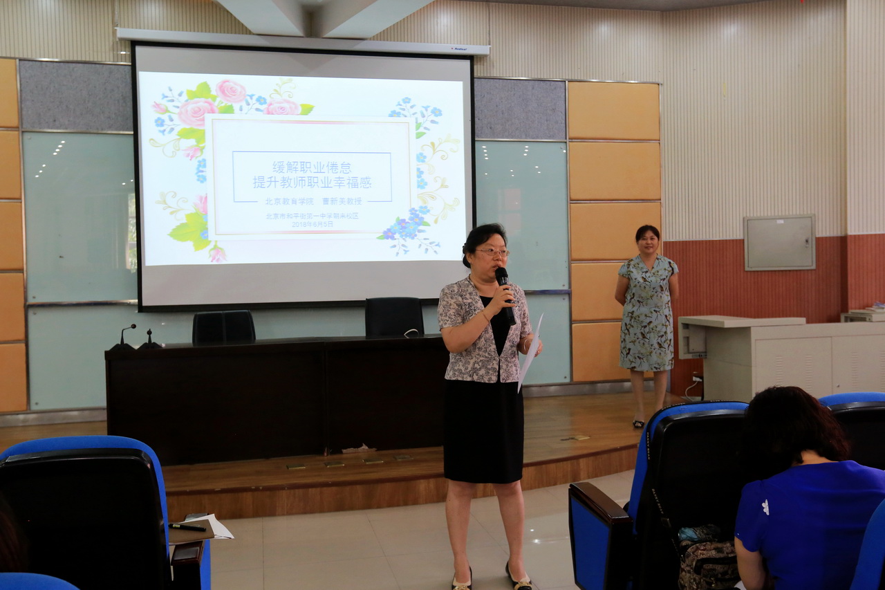 为了提高教师的心理健康水平,让教师在阳光中工作,2018年6月5日,和平街一中朝来校区举行了以“缓解职业倦怠 提升教师职业幸福感”为主题的教师心理讲座。