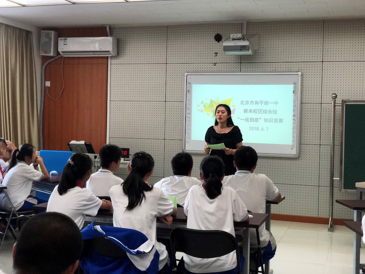 2018年6月7日下午,和平街一中朝来校区综合组举行了“一战到底”政史地综合知识竞赛活动。此次活动旨在帮助学生扩展知识面,开拓学生视野,提高学生的综合素质,营造健康向上的校园文化氛围,同时丰富学生的课余生活,培养学生对政史地学科的学习兴趣。