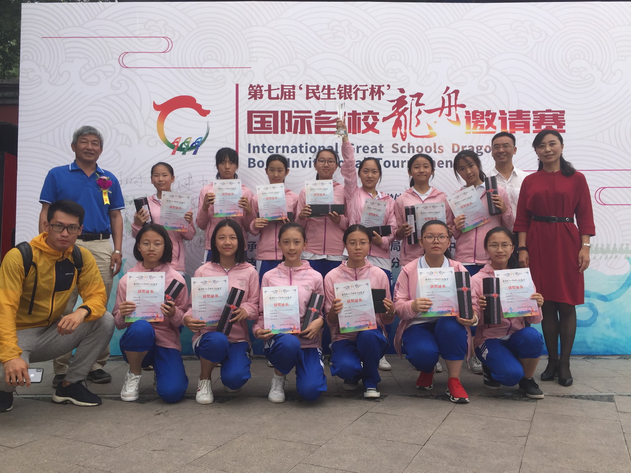 这项民族传统赛事由北京市中小学体育运动协会和北师大实验中学主办,和平街一中和平街初中校区女子龙舟队受邀参加,体育运动协会王秘书长和实验中学蔡校长亲自为和平街一中的龙舟“画龙点睛”。