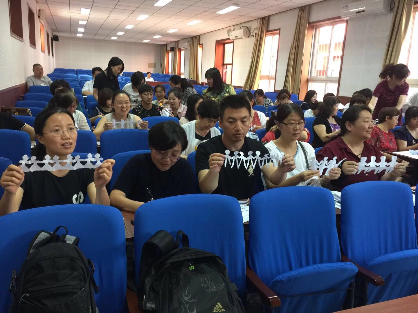 为了帮助老师们把心情调整到积极乐观的状态,缓解近期工作和生活的压力,提高幸福指数。在学校领导的大力支持下,依托朝阳分院送课下校项目,2018年6月19日下午,和平街一中和平街初中校区组织全体教师参加了主题为“快乐心感觉——教师压力管理”的心理减压活动。