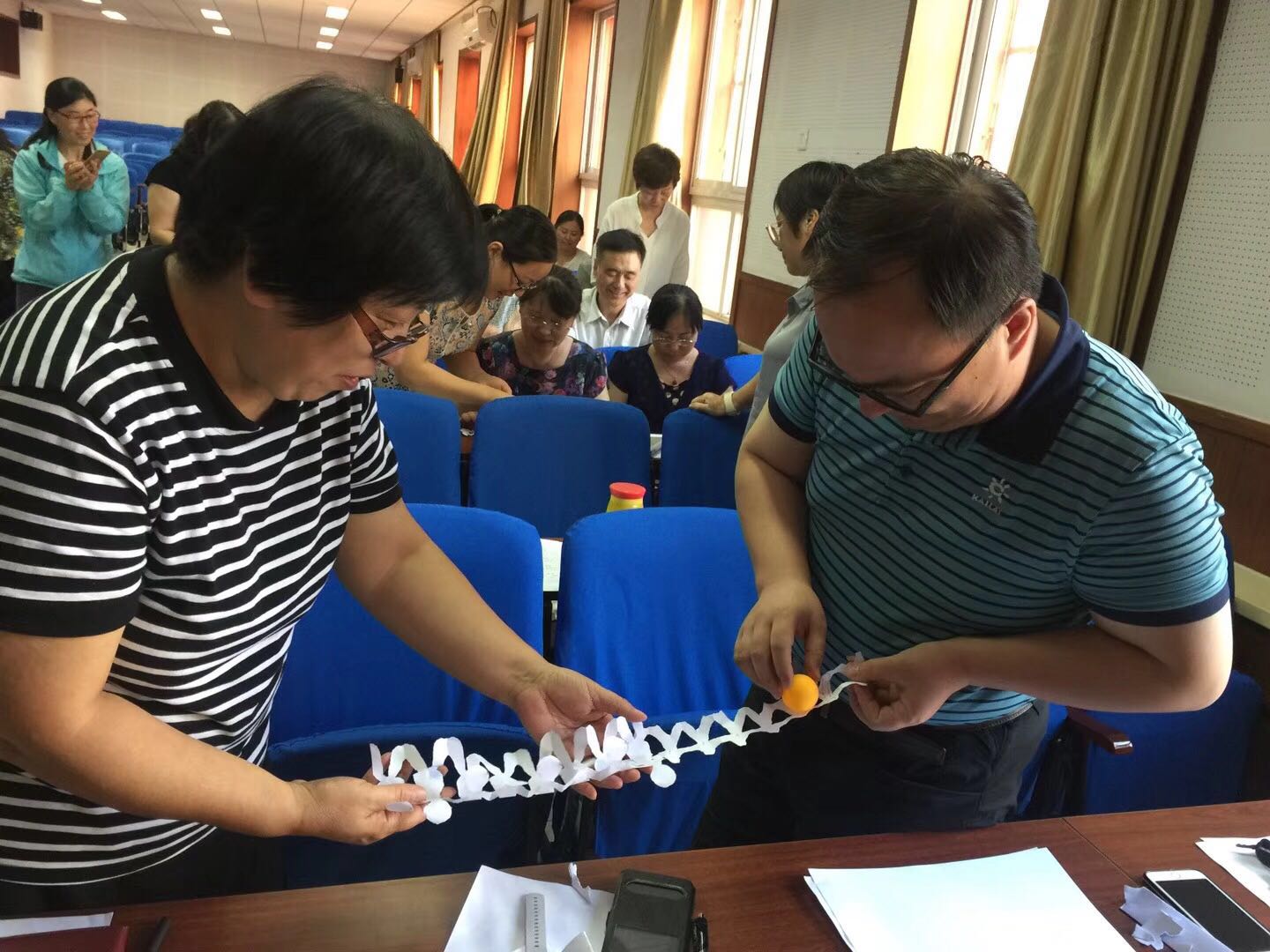 培训专家李亚兰老师以“你所理解的压力”的互动模式作为本次课程的开场白,向大家诠释了心理压力的形成机制和压力管理的关键要素,引导大家觉察内在,改变固有认知、调整行为习惯;自主行动,拓展可用资源、积累对口经验;优化关系,改变互动模式、适应角色定位。并通过人海大搜索、快乐运送乒乓球等活动,让老师们明白了无论遇到什么问题,方法总比困难多。老师们专心聆听,积极与专家互动。一个小时的培训很快结束,老师们都感觉意犹未尽,纷纷表示这样的培训令自己豁然开朗,收获颇多。