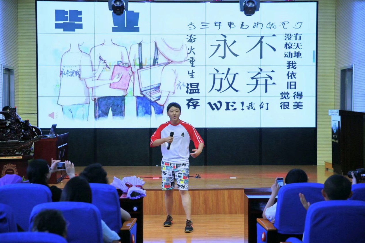 毕业典礼在记录有全体毕业生三年校园生活点滴的视频中开始。那些曾经有过的欢笑和泪水唤起了同学们三年来的美好回忆。学生讲话环节,高二学姐刘心怡、王馨蕊分别讲述了他们作为和一优秀初中毕业生继续选择留在和一求学的心路历程以及高中以来她们在学习上、生活中取得的巨大进步。一个个真实而又生动的故事激发了同学们对母校的热爱,也为同学们对未来的学习和人生规划提供了很大的帮助。