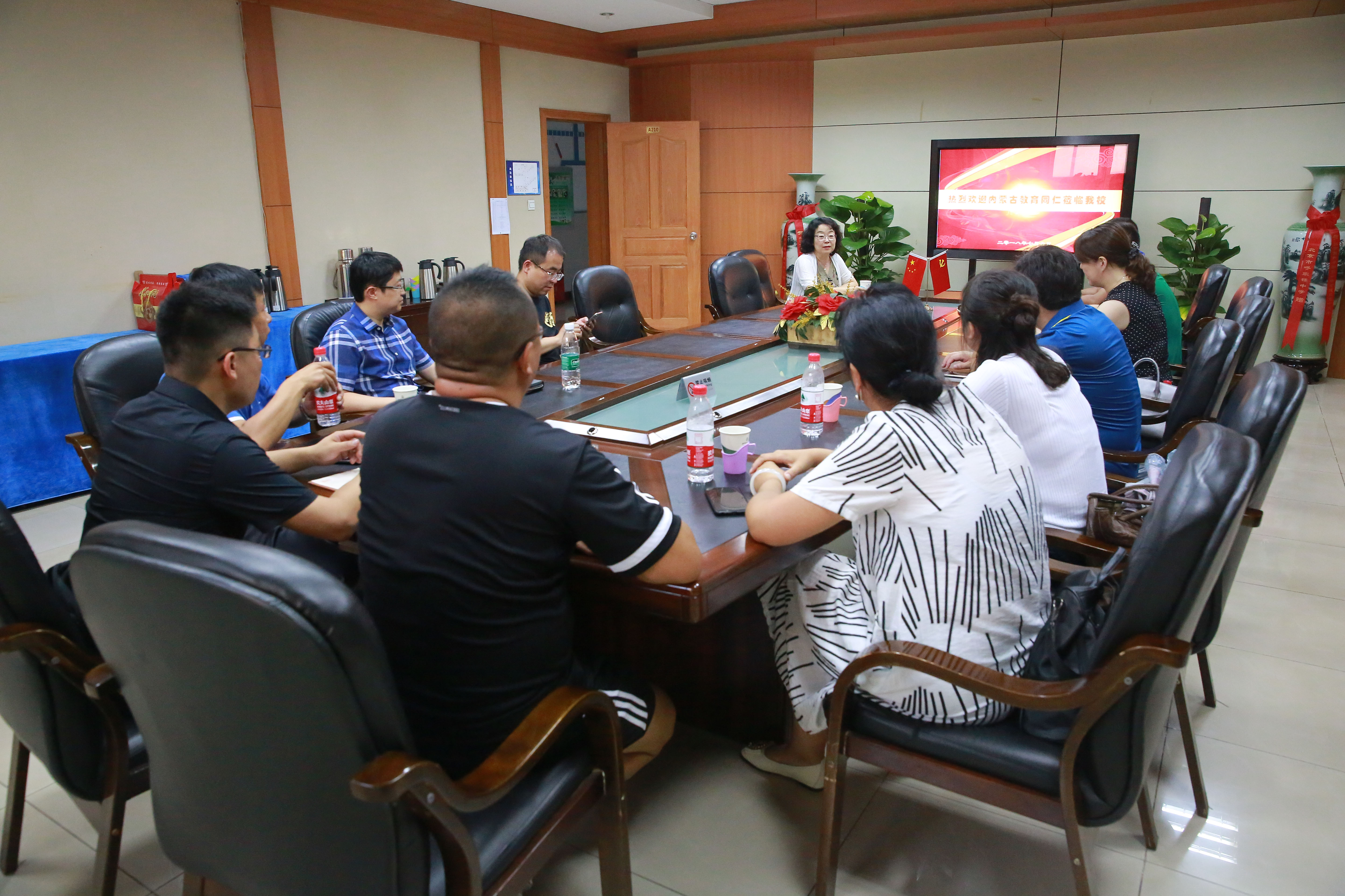 2018年7月6日,内蒙古教育同仁一行9人走进和平街一中莲葩园校区、清友园校区参观交流。和平街一中校长陈秀珍、副校长殷桂萍、副校长杜鹏等校领导热情迎接了他们。
