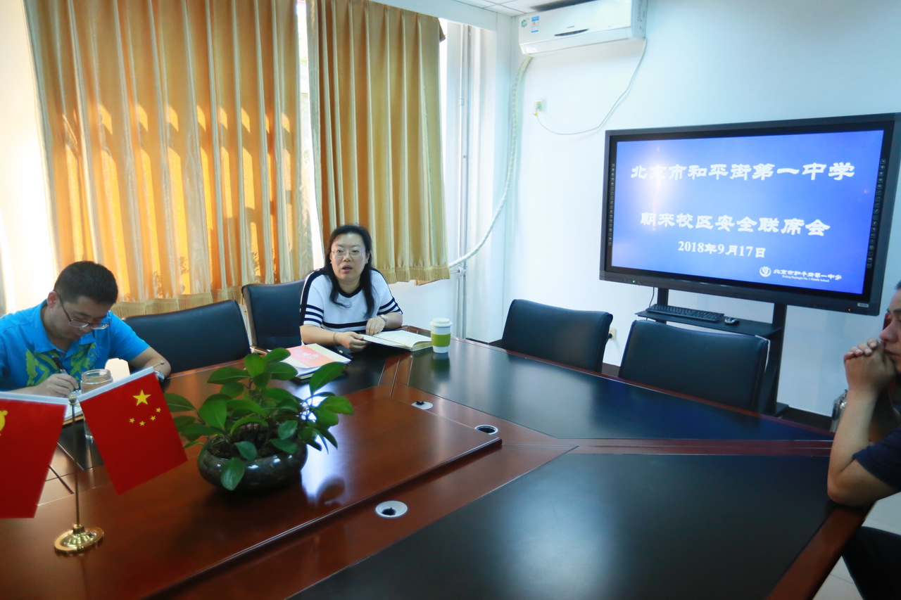 2018年9月17日,和平街一中朝来校区召开安全联席会。会议由张景鲜副校长主持,学生发展处、教务处、总务处、体育组、保卫处、物业公司以及食堂的相关负责人参加会议。