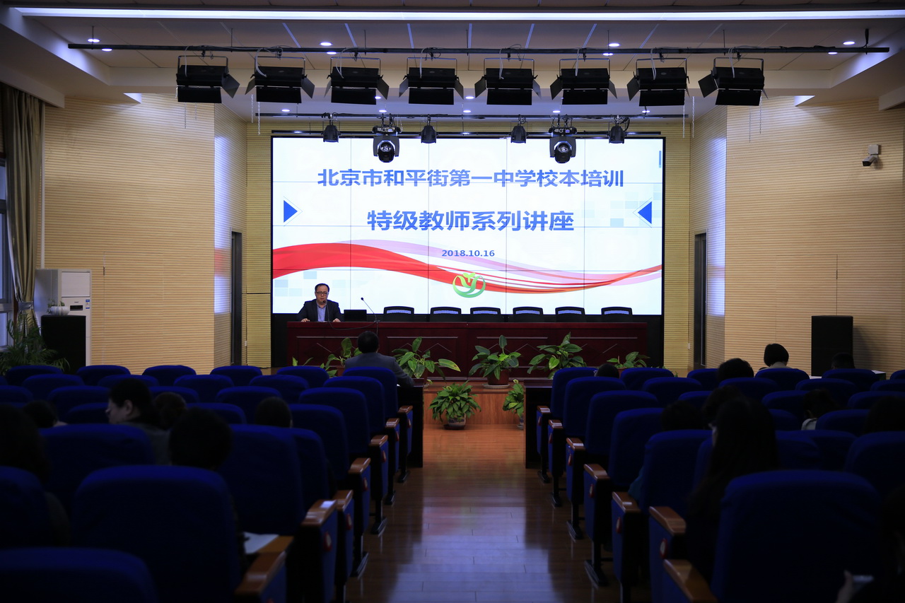 2018年10月16日下午,和平街一中和平街高中校区特级教师大讲堂正式开讲,由学校语文特级教师李继朋为校区全体教职员工做校本培训,开启新学期特级教师大讲堂第一讲。