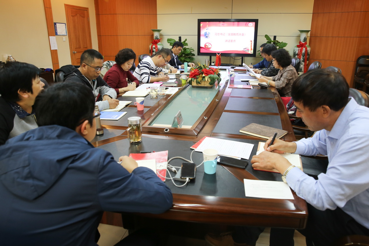 2018年10月10日,和平街一中召开校务会,全体校级领导齐聚北苑莲葩园校区,认真学习习总书记在9月10日全国教育大会上的重要讲话精神。陈秀珍校长主持会议,并对总书记全国教育大会讲话要点进行解读。