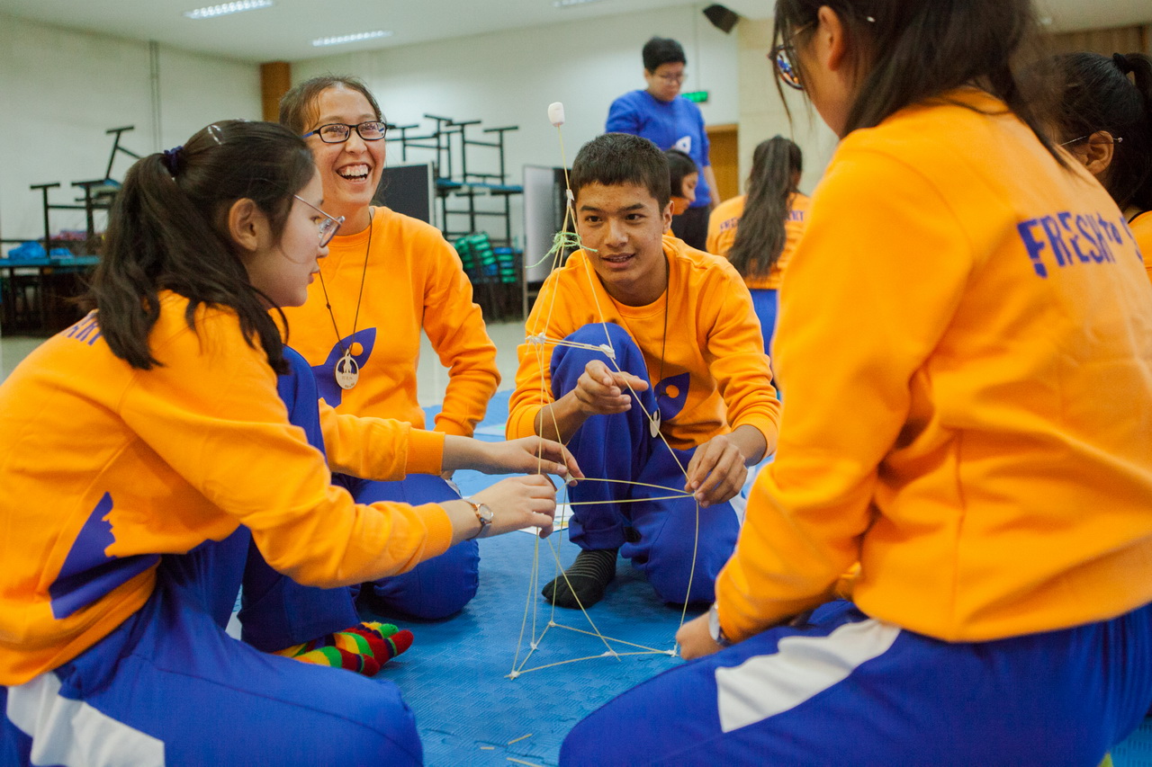 预科年级学生离开家乡熟悉的环境来到北京,在衣食住行、天气变化、语言文化、人际沟通、消费习惯、学习模式等方面需要重新去适应,面临着不小的挑战。在活动体验中,预科年级80名学生被分为8个小组,在小组导师的引导下,通过一系列以体验式学习为主的活动,不断探索自己,突破自我,认识到团队的力量,在快乐中实现跨越和成长。