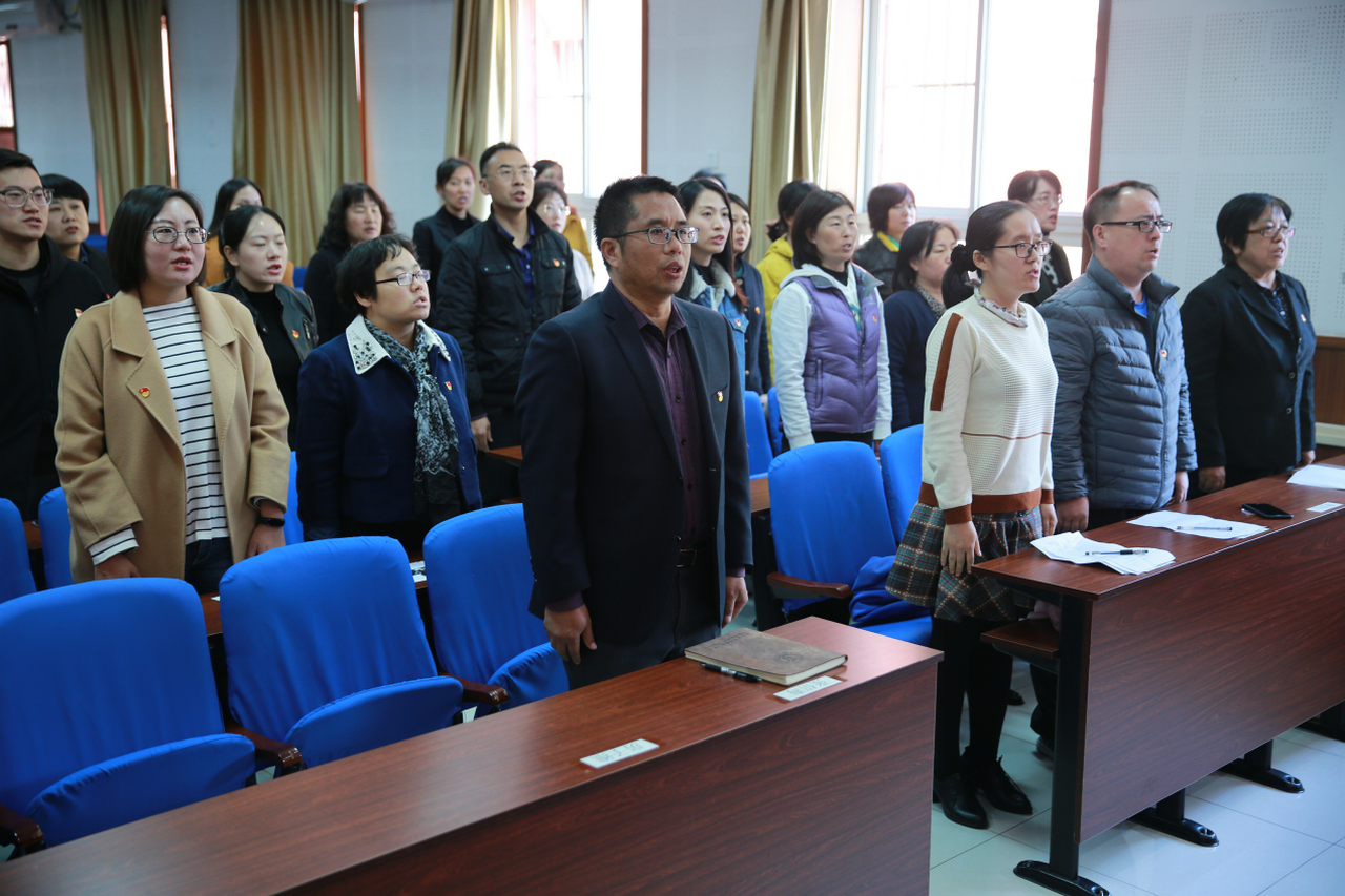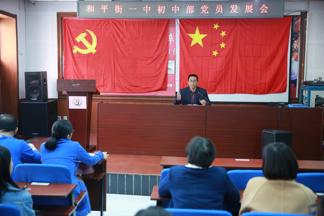 2018年11月1日中午,和平街一中和平街初中校区党支部召开冯海娟同志的预备党员发展会,支部33名党员及2名入党积极分子参加会议。
