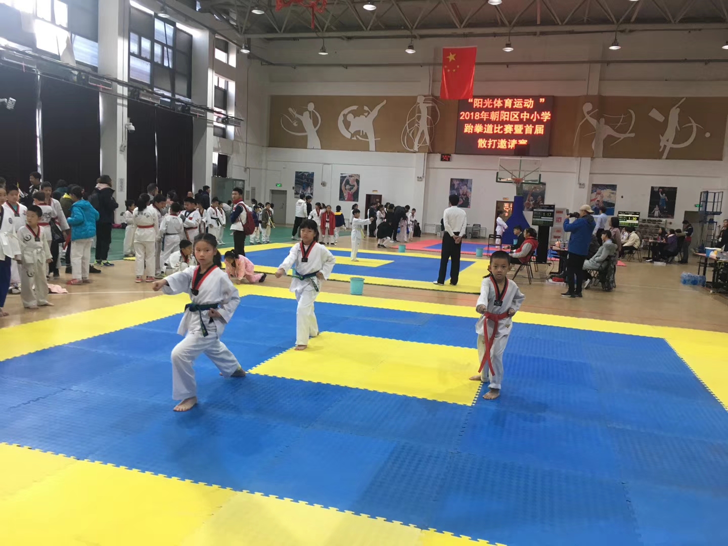2018年11月10日,“阳光体育运动”2018年朝阳区中小学生跆拳道比赛拉开帷幕。和平街一中小学部的选手们在张海涛老师的带领下参加了比赛。参赛选手们克服了训练中的种种困难,战胜了赛场上的紧张情绪,最终勇创佳绩,取得了个人竞技第一名1人次、第三名6人次、第五名1人次,个人品势第一名1人次、第五名1人次、第八名1人次,团体品势第六名和第八名各1项的好成绩。在此,向获奖学生表示祝贺!
