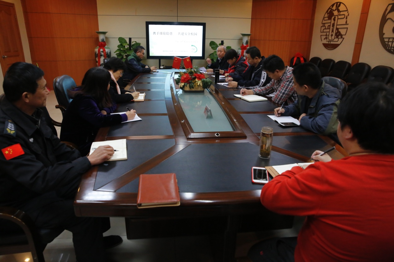 为进一步增强全体教职员工的责任感和紧迫感,全力维护学校的安全稳定,确保2018年校园安全事故零发生,2018年11月28日,和平街一中莲葩园校区召开了安全工作联席会。法制副校长李景富警官,校长助理刘鹏,总务处、校医室相关负责人及食堂、保安、宿舍管理员参加了会议。