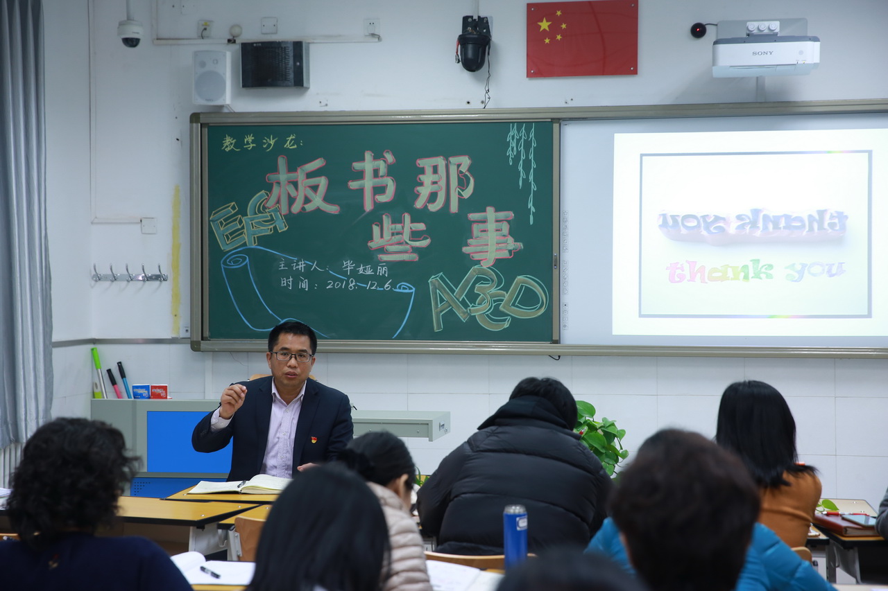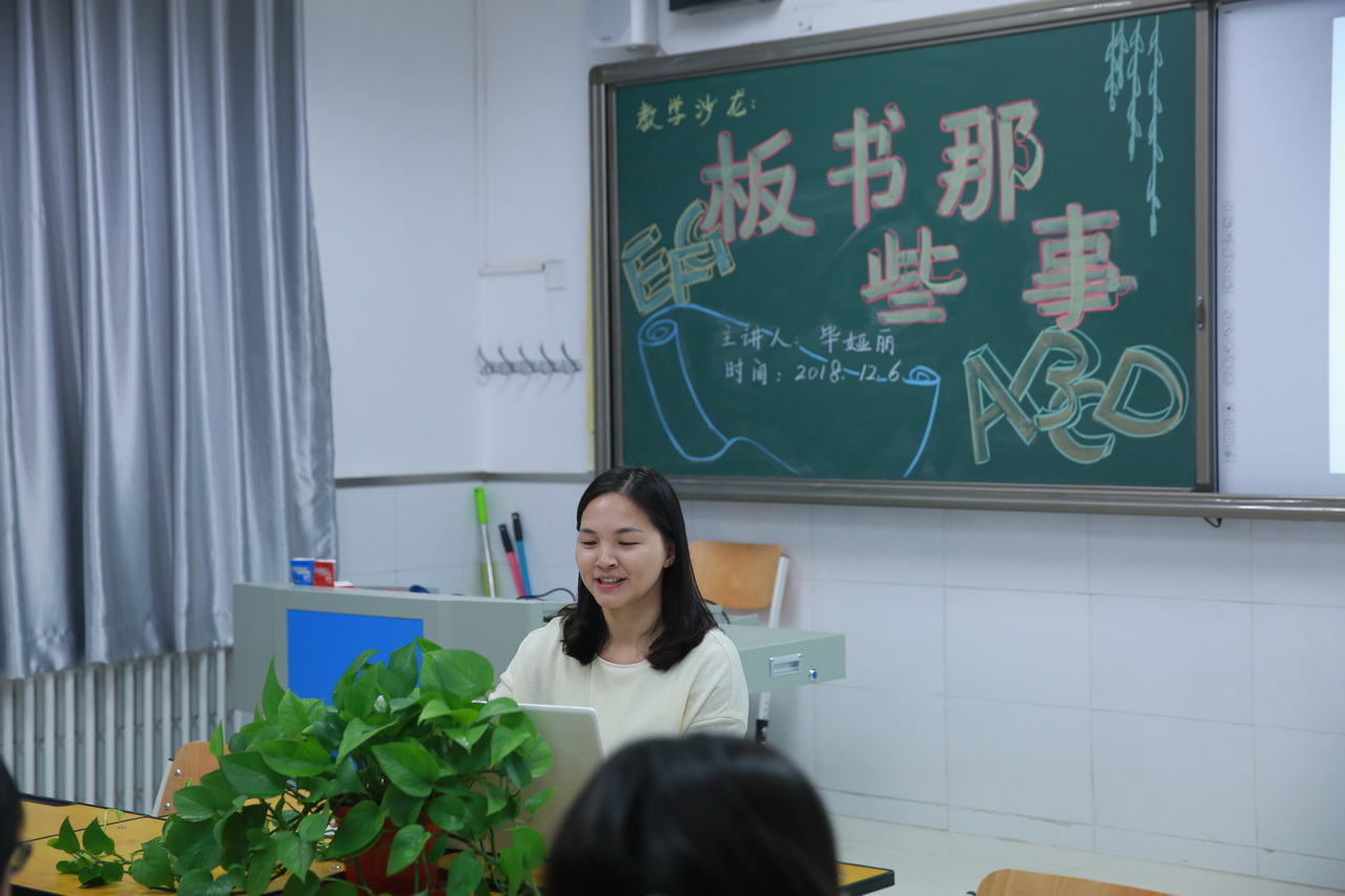 2018年12月6日上午,和平街一中和平街初中校区教学沙龙系列活动之“板书那些事儿”如期举行。本次沙龙活动主讲人是英语学科区级骨干教师毕娅丽。