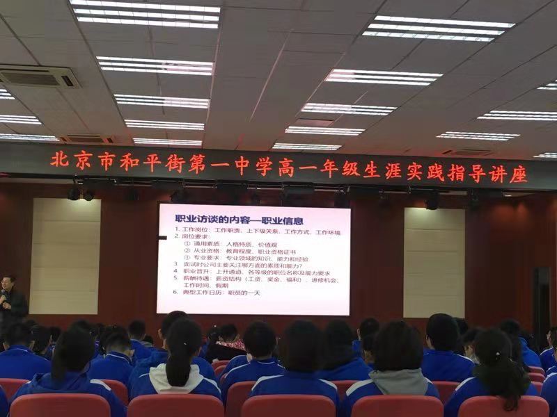 2018年12月6日,和平街一中莲葩园校区高一年级开展了生涯实践活动。早上7:50--8:30,在五层阶梯教室,专家瞿战老师为大家详细介绍了生涯规划和学科规划的关系以及对于职业规划的方法。