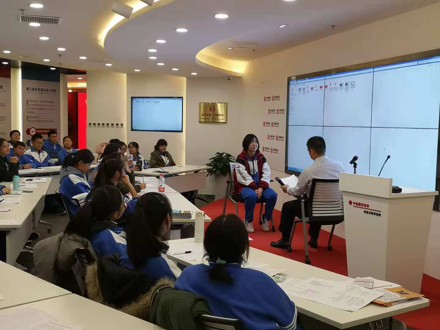 第二条线路是科技、经济类,地点是北京进化者机器人科技有限公司和北京富国大通资产管理有限公司。上午的实践中,同学们详细了解了机器人行业的发展前景及需要培养的能力。下午,HR对同学们进行了模拟招聘。同学们切身感受了招聘环节,对接下来努力的方向有了更清晰的认识。