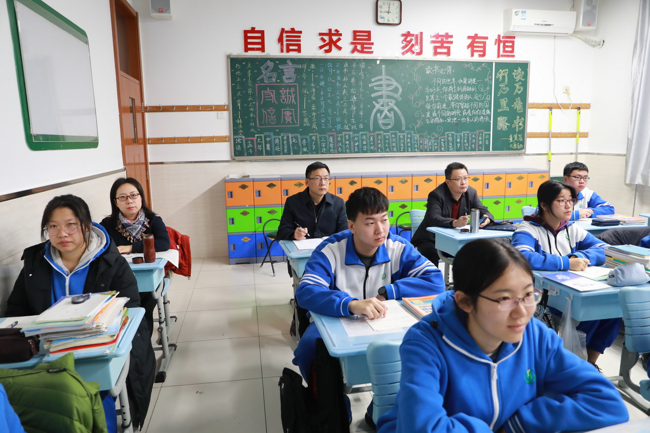 领导和教研员们深入高一、高二、高三年级各班课堂,共听课60余节次,涉及高中语文、数学、英语、物理、化学、生物、地理、历史、政治9个学科。课后,教研员们与授课教师进行了交流研讨,对老师们的课进行评课指导,肯定了老师们课堂教学中的优势,也指出了需要改进的地方。