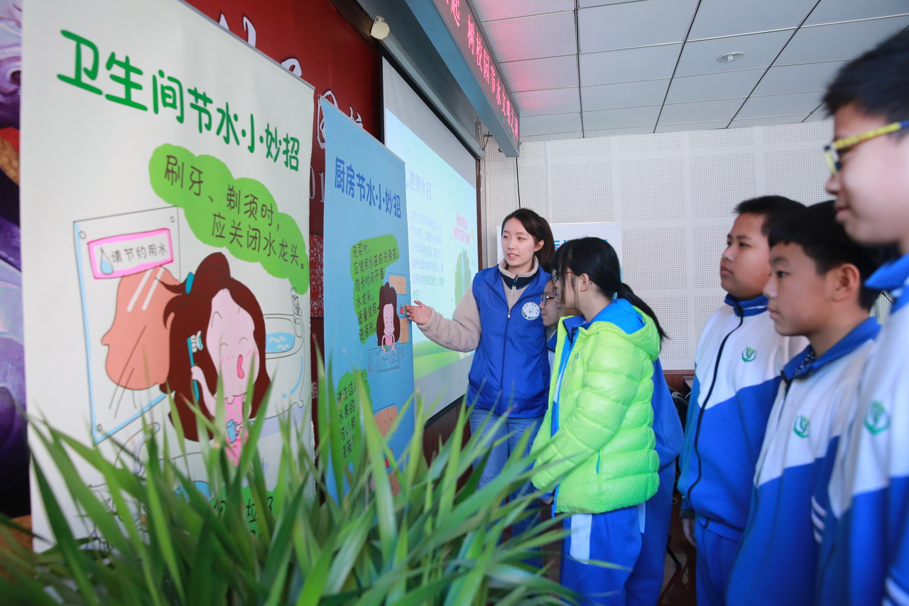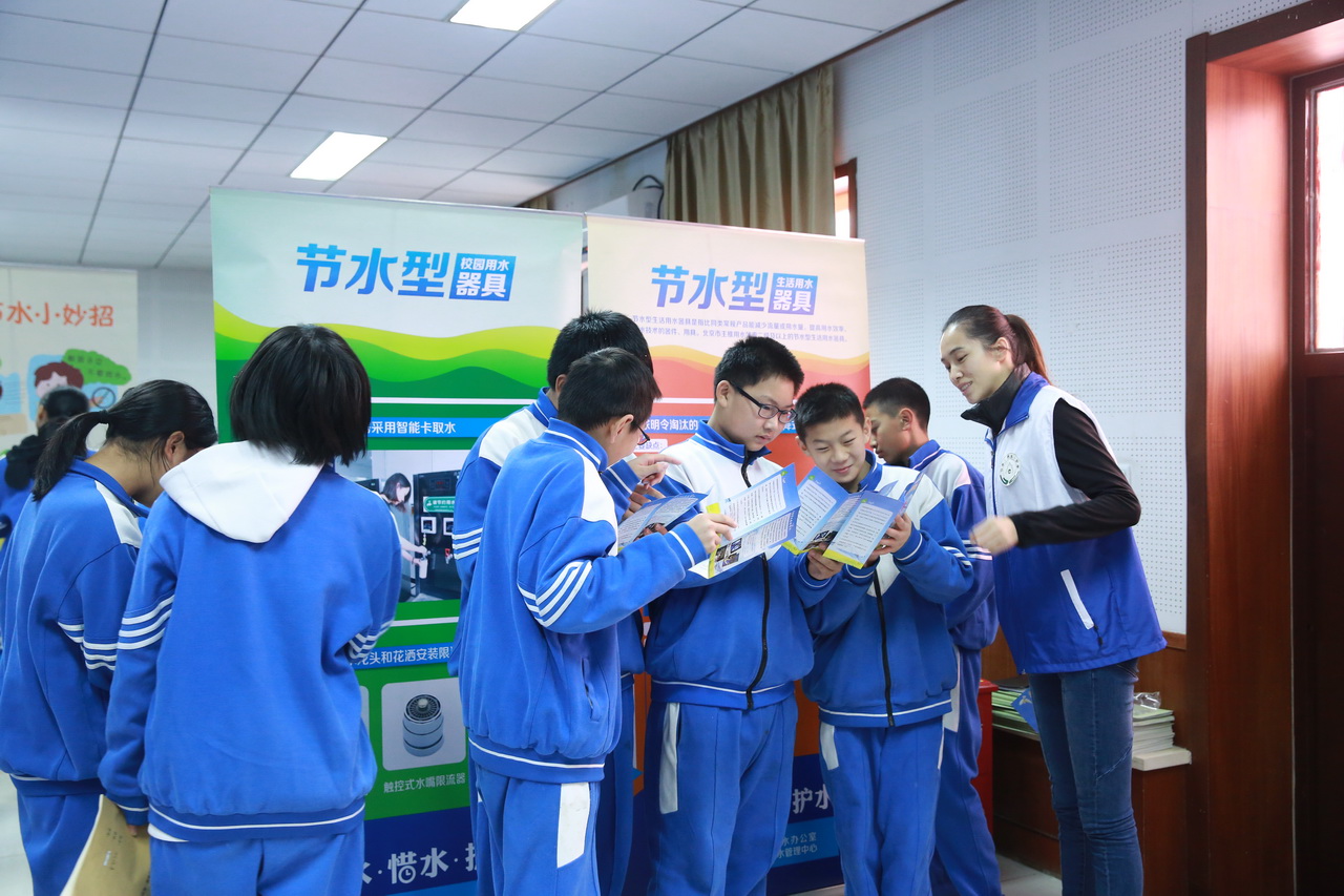 讲座中,节水公益志愿者为同学们讲解了地球水资源的情况及北京的用水情况,同时还教授大家在学校、家庭、公共场所如何节约用水。同学们与志愿者积极互动,分享自己的节水小妙招,并记下了今后该如何做一名节水小能手。