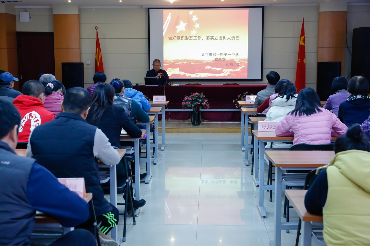 2018年12月11日,和平街一中朝来校区党支部和莲葩园校区党支部的全体党员分别在本校区参加了“党总支书记讲党课”活动。学校党总支书记李兵结合各校区党员实际,以“做好意识形态工作,落实立德树人责任”为题,为党员们上了一堂精彩生动的党课。