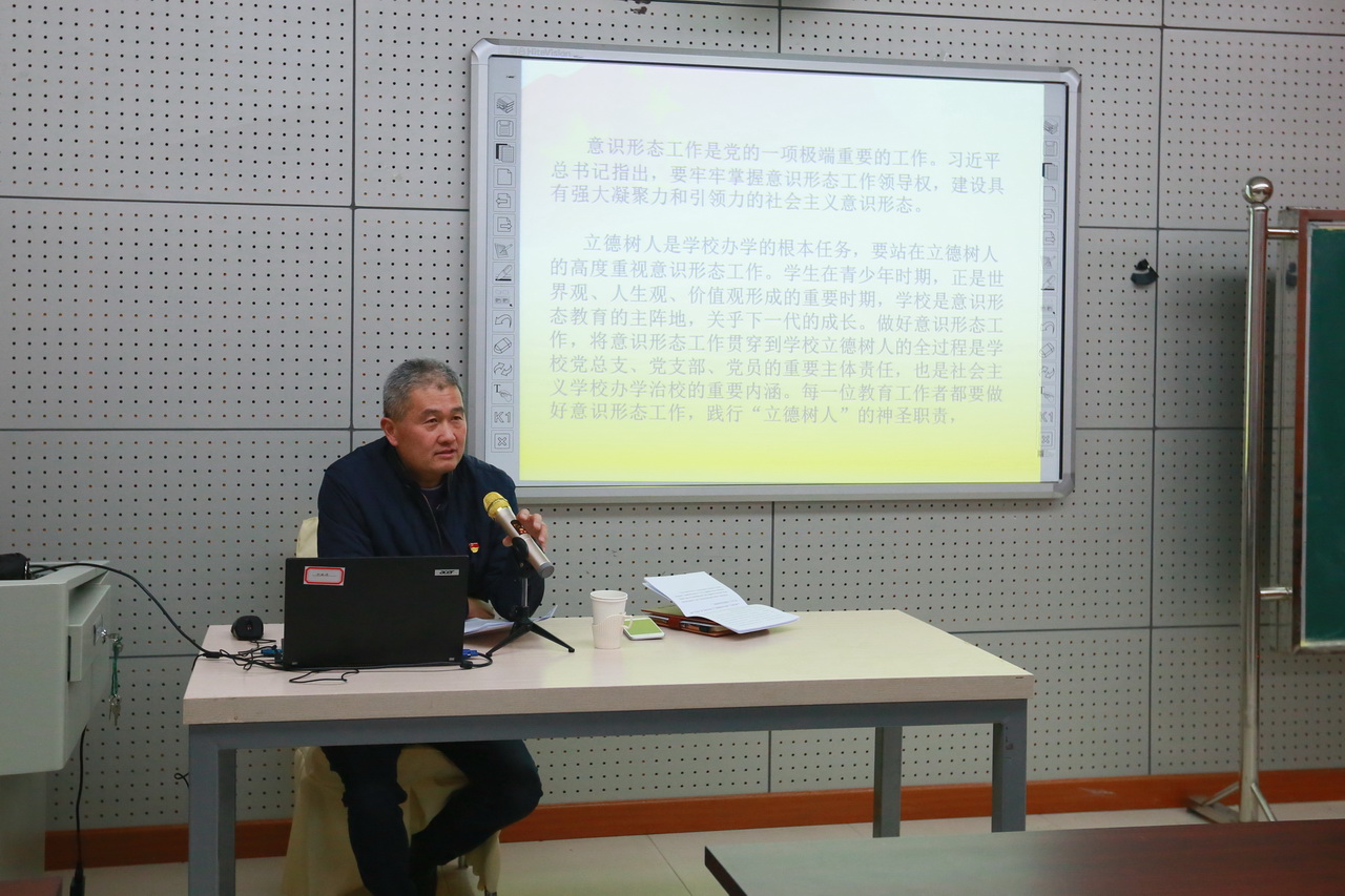 李兵书记强调教育的根本任务是立德树人,要培育社会主义接班人。李书记提醒全校教师要高度重视意识形态教育工作,要重点做好四个方面的工作:第一,要坚持正确的政治方向;第二,强化课堂教育和管理的针对性;第三,用主流价值观的各种实现形态和现实载体强化校园环境建设;第四,加强抵御和防范宗教渗透的责任。