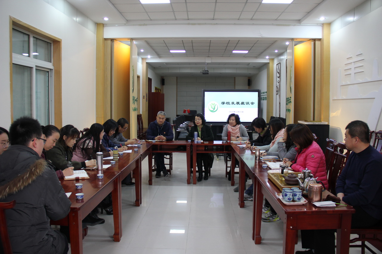 2018年12月21日,和平街一中清友园校区召开2018年学校发展座谈会。和平街一中校长陈秀珍、党总支书记李兵、小学部主管副校长殷桂萍和教师代表参加会议。
