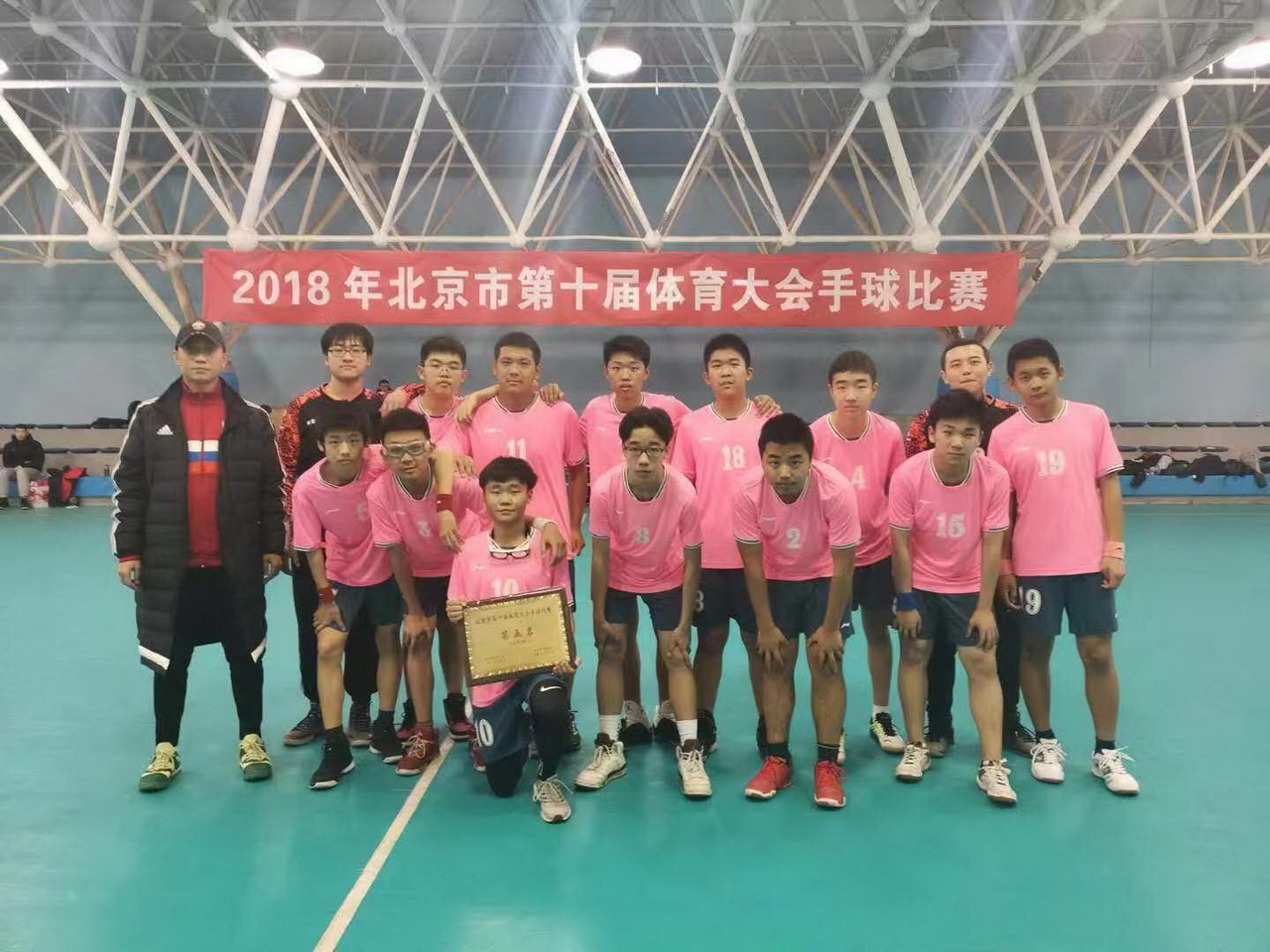 2018年12月22、23日,北京市第十届体育大会中小学生手球比赛在木樨园体育运动学校举行。和平街一中手球队在史为硕老师带领下参加了比赛。经过激烈角逐,学校手球队荣获U18男子组第五名的好成绩。在此,向获奖同学们表示祝贺!