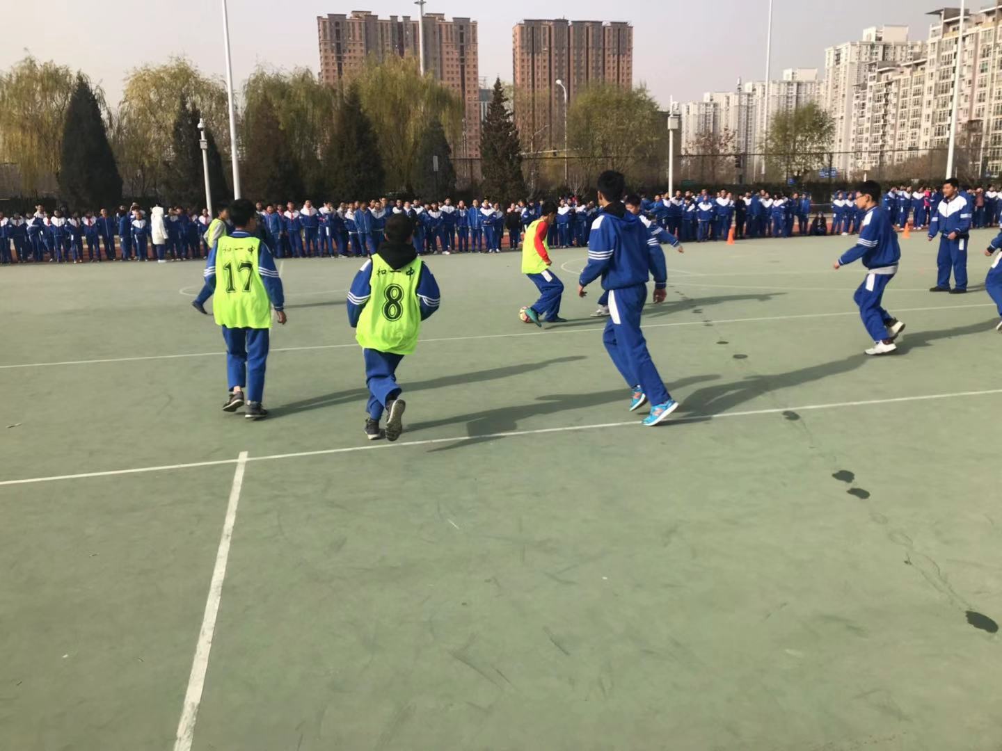本次校园班级足球联赛系列活动,全校从小学到高中共有100多个班级、超过4000名学生参与其中。比赛分年级进行,内容分别为九宫格射门比赛和班级五人制足球赛。经过一个多月、近200场比赛的紧张角逐,所有比赛于12月中旬圆满落下帷幕。