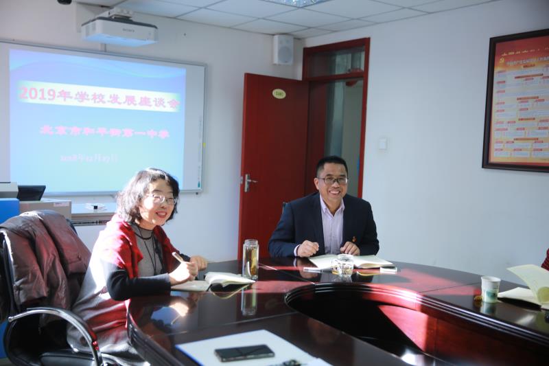 2018年12月27日,和平街一中和平街初中校区召开2019年学校发展座谈会,校长陈秀珍、校区主管副校长邹小刚和教师代表们参加了会议。