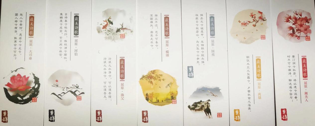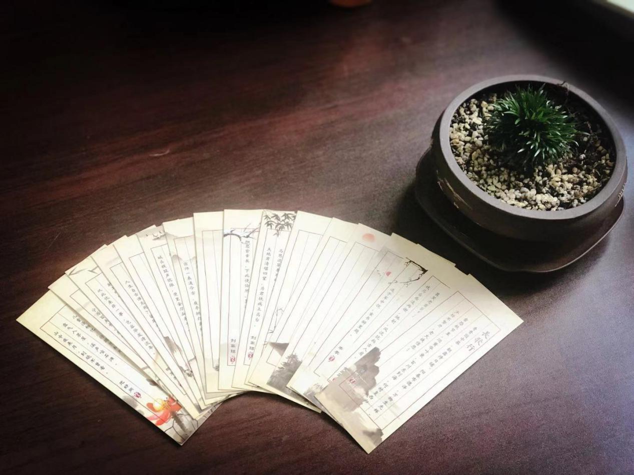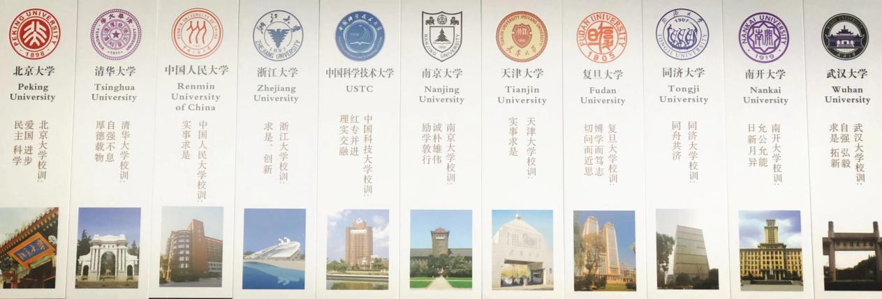 学校还为每一位学生精心挑选了凝聚中国传统文化的书签。书签上配有中国经典古诗词、楚辞、二十四节气、水墨励志等内容,它们图文结合,以一种生动、活泼的方式将学生带入到古典文化的儒雅和深邃之中。全国各大名高校的书签上则印有该校的校门和校训,它不仅是一种励志,更是一种鼓励,希望和一学子能全面发展综合素质,向心中理想的高校迈进。