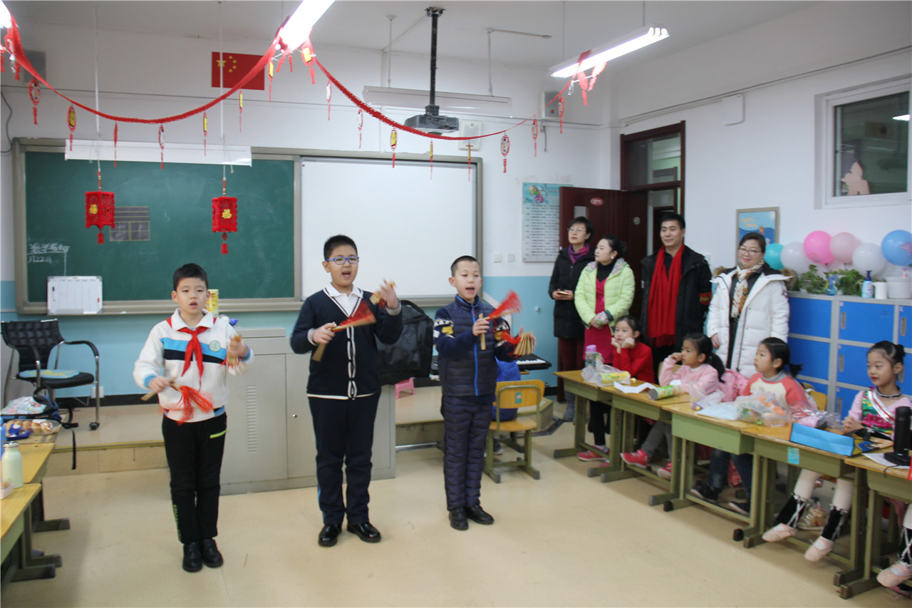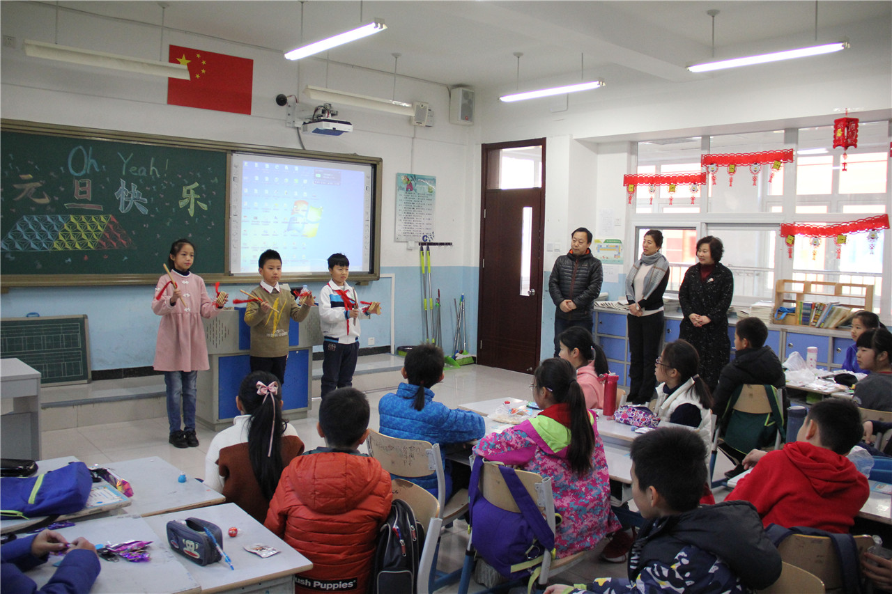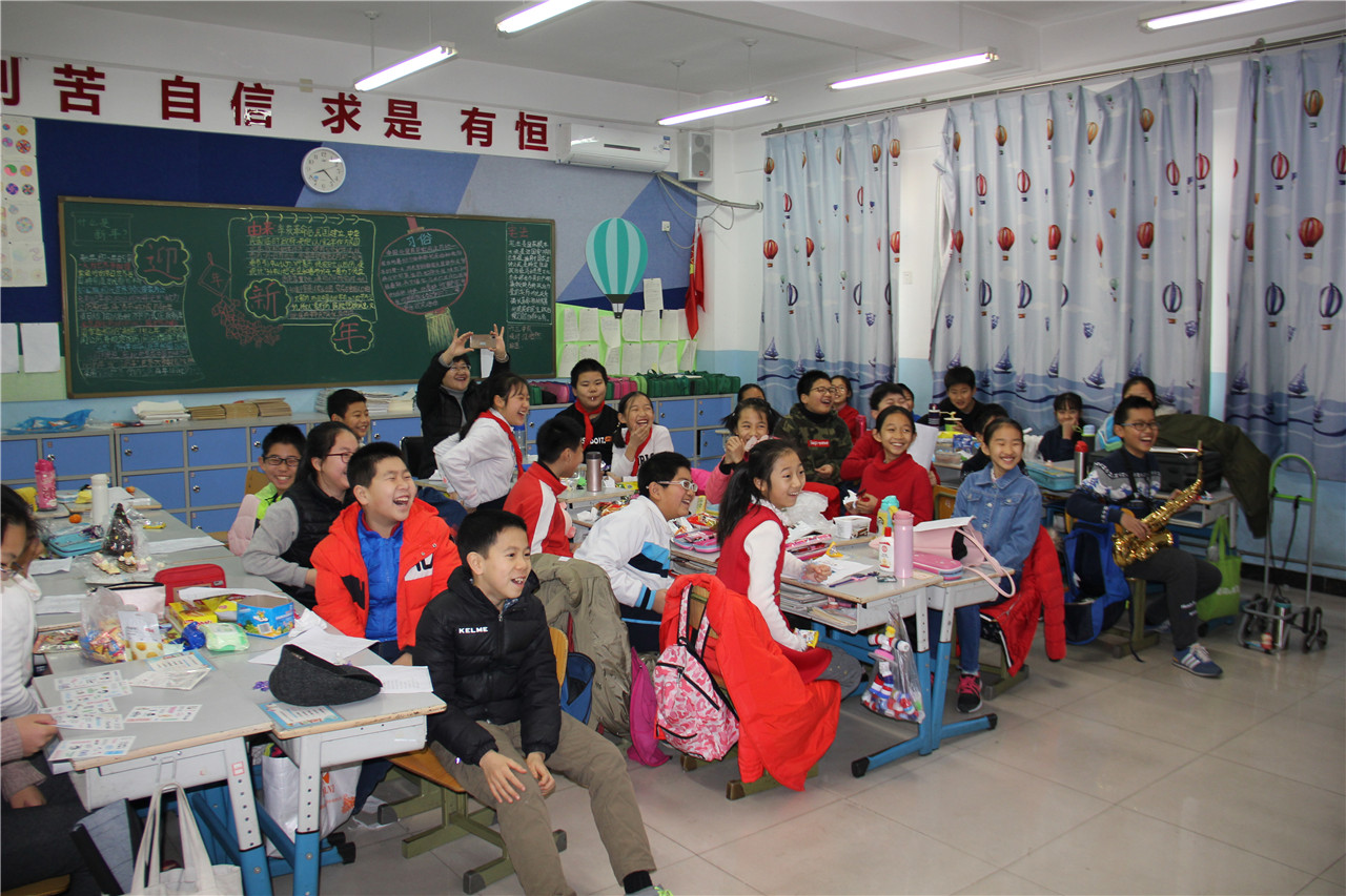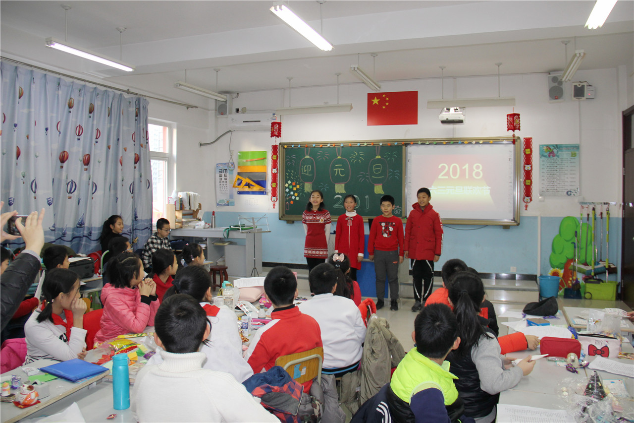 2018年12月29日上午,和平街一中小学部举行了迎新年班级联欢活动。各个班级教室内张灯结彩,一派喜庆。彩色的气球、美丽的图案装点着教室,五彩的拉花悬在空中,各种美味的糖果摆满桌子,欢快激情的音乐在耳畔响起……