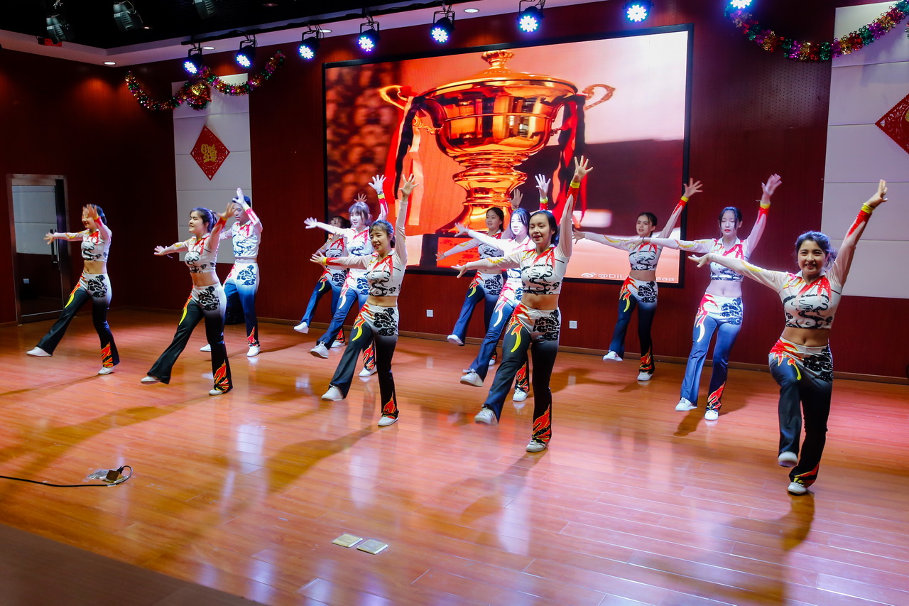 伴随着健美操社团带来的燃爆全场的开场舞表演,元旦庆祝活动在激情热烈的氛围中拉开帷幕。