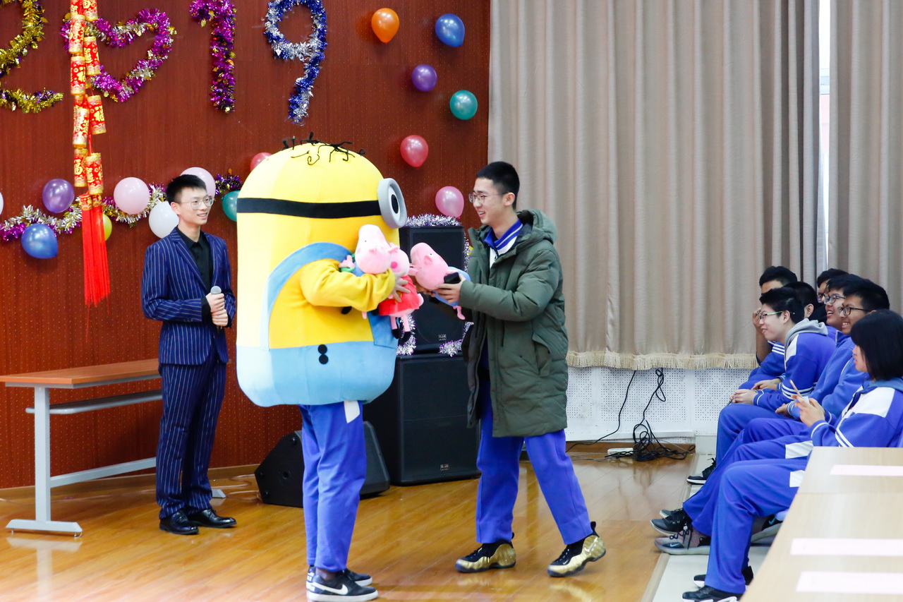 高三年级采用班级联欢的方式迎接新一年的到来。周建萍副校长带领学校中层干部走进班级,与同学们欢度佳节,向高三全体师生送出新年的问候与祝福。这是高三学生在和一校园度过的最后的一个新年,同学们都倍加珍惜。他们用自己的方式来纪念自己的青春时光。猜谜语、玩游戏,欢乐不断;展才艺、秀技能,精彩连连;品好茶、尝美食,温暖美好。每个人都洋溢着幸福的笑容,每个人都用青春的激情迎接着希望无限的2019。教室内欢声笑语不断,师生关系亲密无间。同学们在校领导、老师们的关爱与祝福中更加坚定与自信。