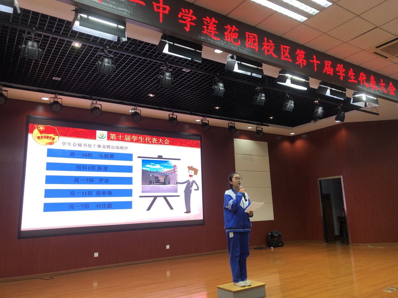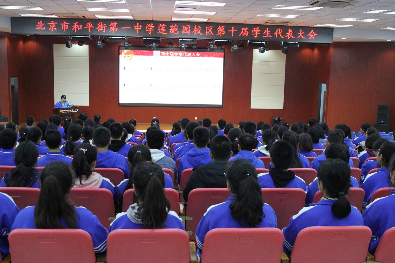 为了充分发挥学生会的桥梁和纽带作用,培养学生的民主意识,同时,选举产生新一届学生会成员,开创校区学生会工作新局面,2018年12月28日,和平街一中莲葩园校区第十届学生代表大会第一次会议大会在阶梯教室圆满召开。学生会全体成员、各班学生代表参加了大会,周建萍副校长、刘鹏校助、李怀东校助、王军主任、洪娟主任、德育教导员王建玲老师、宇建华老师、刘争老师出席了本次大会。