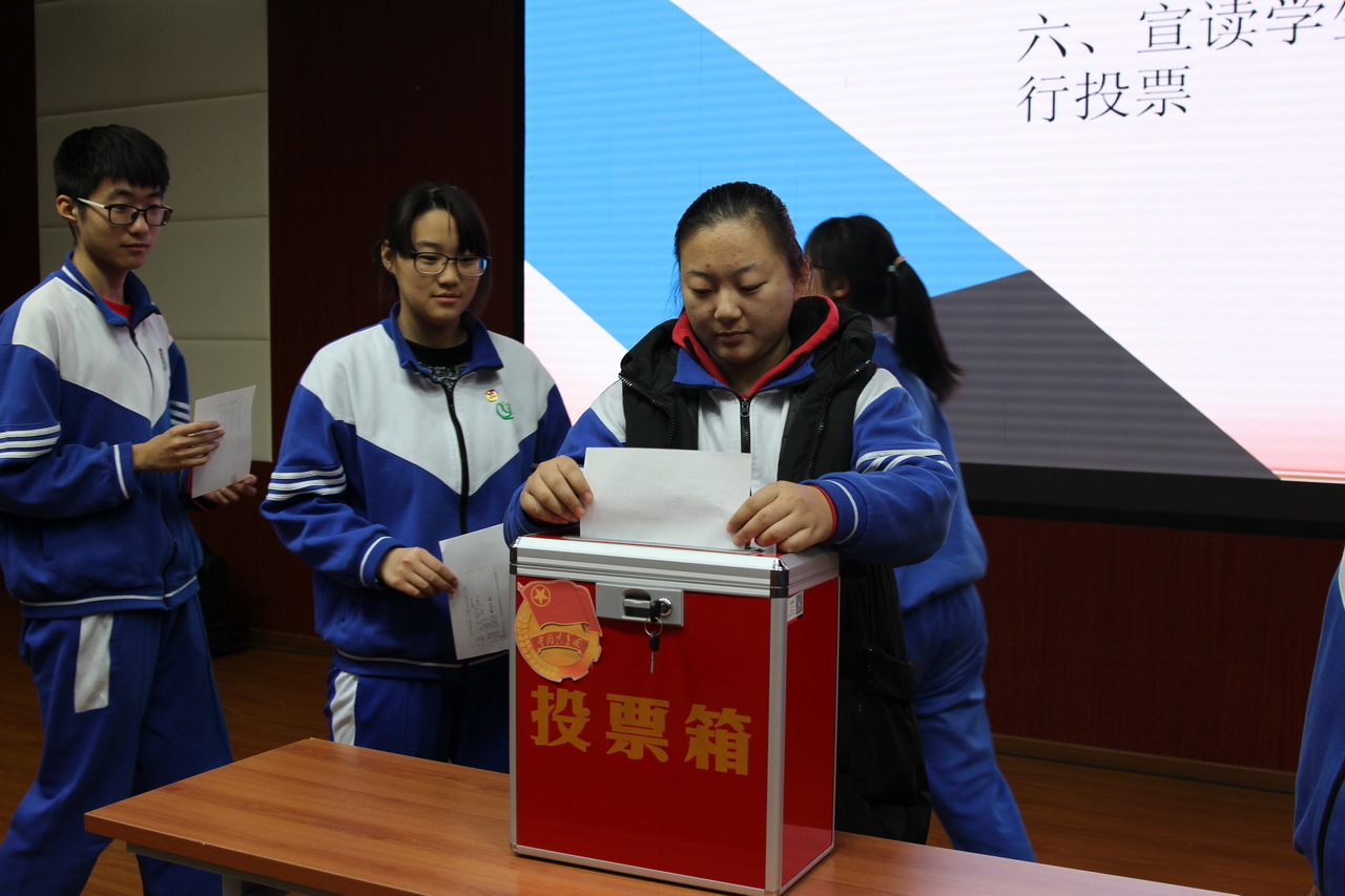 竞选结束后,在场学生代表采用无记名投票的方式,本着公平、公正、公开、民主的原则,投出了神圣的一票。