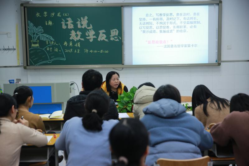 教学反思是指教师对教育教学实践的再认识、再思考,并以此来总结经验教训,进一步提高教育教学水平。冉老师从“什么是教学反思、为什么要进行教学反思、怎么进行教学反思、如何写教学反思”等四个方面进行了详细阐释。此次沙龙,再一次证明了教学反思是教师提高个人业务水平的一种有效手段。