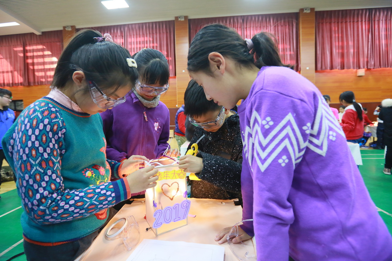 六年级学生来到朝来校区体育馆进行“新年创意花灯”制作。张景鲜副校长致欢迎词,欢迎六年级学生的到来,希望他们可以在活动中学会小组合作,培养创新意识。随后,学生分组进行活动。先进行方案设计,评委老师审核通过后方可换取创客币到材料超市购买需要的材料,然后小组成员利用手中的工具合作完成一个新年花灯。活动结束后,专家对学生作品进行点评,充分肯定了学生们的想象力和创造力,也提出了一些宝贵意见。