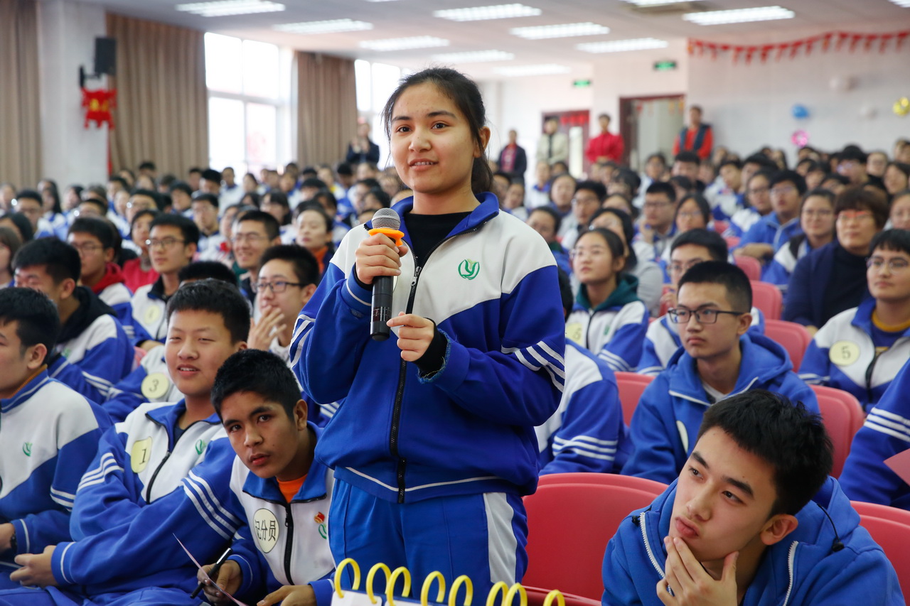 本次竞赛共有14支参赛队伍参加。每支参赛队由班内两名推荐队员和三名随机抽签产生的队员组队参赛。竞赛分为“乘风破浪”、“同舟共济”、“兵戎相见”“争分夺秒”“一锤定音”五个环节,题目内容涵盖民族团结、党史、改革开放40周年、校史、法律法规、文学常识等方面内容。比赛题目知识性强、文化性强,除常规题目外,还加入了图片题、音频题等,增加了比赛的趣味性。选手们的精彩表现不断引发台下观众的阵阵掌声、喝彩。互动环节,现场观众进行抢答,更是将比赛气氛推向了高潮。