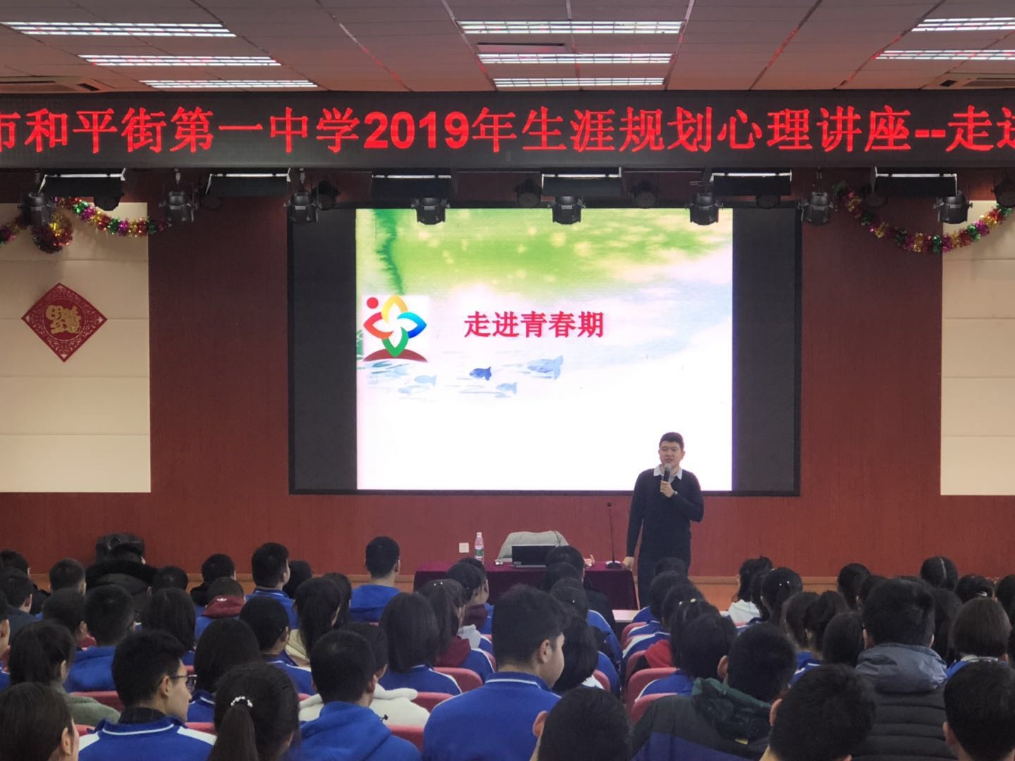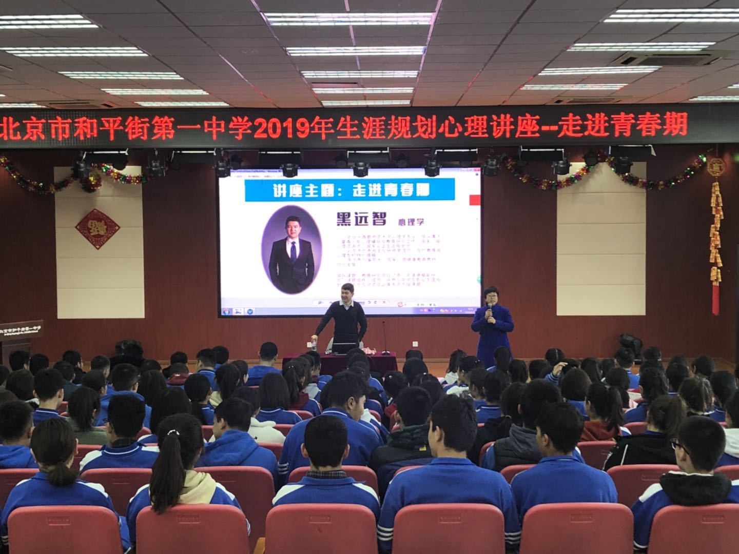 青春期是一个身心发展的特殊时期,其健康对未来学习、工作和生活具有决定性的意义。为了帮助学生掌握、了解青春期生理及心理的发展变化,普及青春期健康知识,提高青春期的自我保护能力,帮助学生找准自身发展方向,规划未来人生蓝图,实现高中学习突破,2019年1月23日,和平街一中莲葩园校区举行了2019年生涯规划心理讲座——走进青春期。本次讲座由国家心理咨询师、现代教育报心理专栏特约撰稿人黑远智老师担任主讲,学生发展处洪娟主任主持。