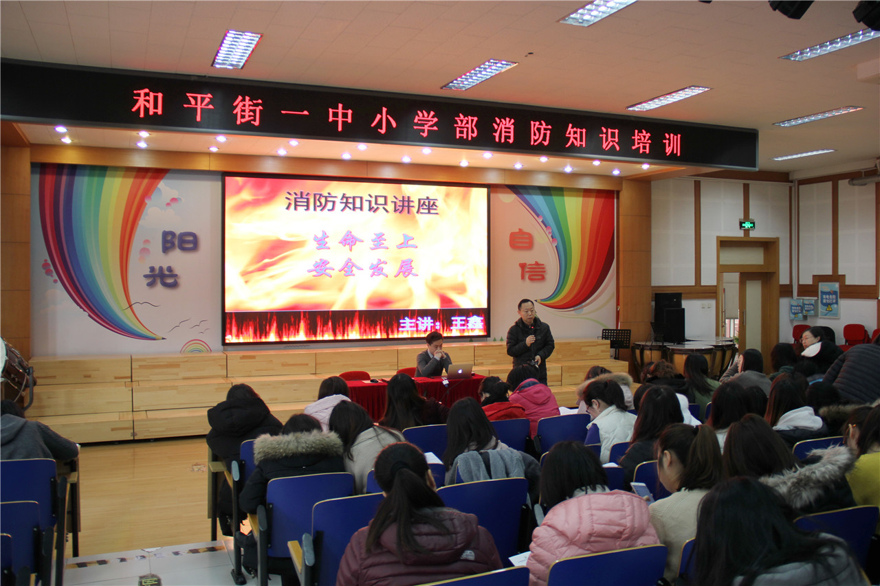 2018-2019学年第一学期即将结束。回顾一学期的工作,既忙碌又充实,既紧张又快乐。为了今后更好地开展学校工作,2019年1月24日,和平街一中小学部在四层阶梯教室召开2018-2019学年第一学期期末工作总结会暨消防知识培训会。小学部全体教职员工参加会议。