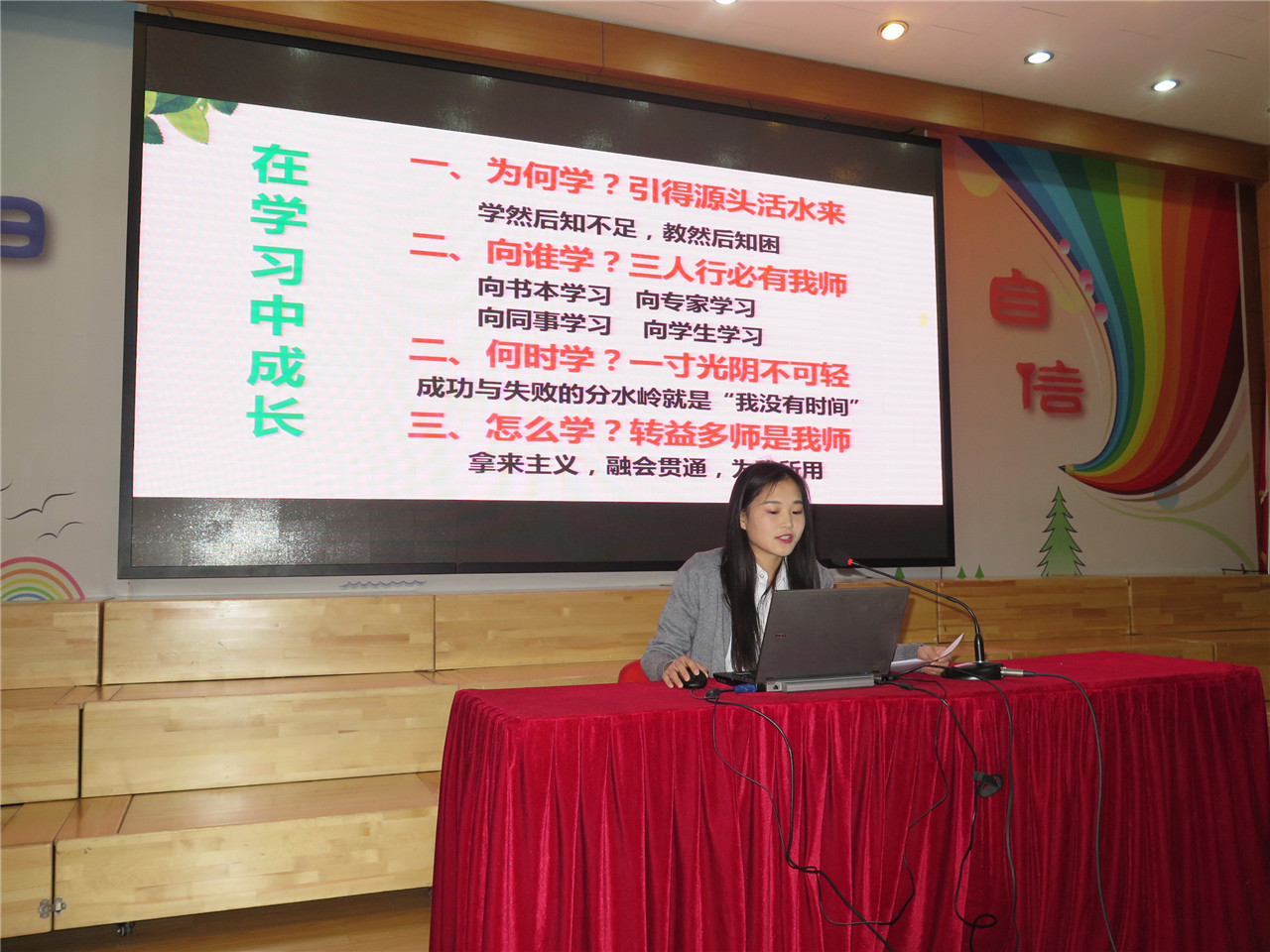 活动中,耿玉如、王硕两位教师以《静下心来教书,潜下心来育人》和《守护童心 陪伴成长》为主题,分别从班主任专业素养和能力提升、在学习中成长、在实践中提高,以及学生行为习惯养成、班级管理、岗位设置等多角度、多层次介绍了自己的培训心得与爱生之路,和大家分享了自己的教育智慧和管理班级的快乐与收获。通过交流,老师们从那些真实的案例中感受到了班主任的真情与智慧,从那些朴实的语言中读懂了班主任的付出与收获。