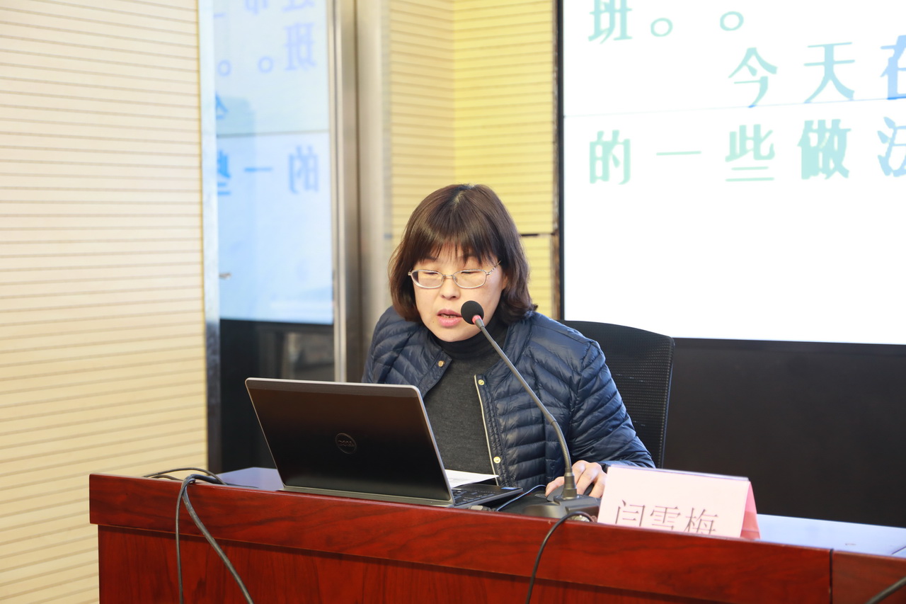 会议首先由四个校区八位班主任老师进行“一招鲜”经验分享。朝来校区张莉老师交流的主题是“显性文化建设,打造和谐班级”。张老师从建设班级文化入手,着眼于明确宣传主题、利用动态空间。和平街初中校区乔秋颖老师以“认真——最美的精神品质”为题,把目光放在了培养学生的日常行为习惯上,将认真这一品质贯彻到了平时的学习生活中。和平街高中校区闫雪梅老师“静待花开 芬芳自来”的发言,从自身经验介绍了常规管理中与学生相处时要尊重包容,言之有理。朝来校区付建影老师以“有规矩 成方圆”为题,将班规灵活应用,促进学生规矩意识的形成。莲葩园校区程瑞芬老师“向着明亮那方”的主题发言,从价值理念、物化环境介绍了班级文化建设经验。和平街初中校区邵冰雪老师“入境训练,满满回忆”的发言介绍了如何从学生制作手抄报中发掘教育方法。莲葩园校区邹鹏老师以“做有温度的教育”为题,讲述了自己从刚入职到现在内心的成长之路,提出要做学生成长路上的陪伴者。和平街高中校区王瑞雪老师“班会立德 教育树人”的发言,介绍了如何以班会主阵地为抓手,利用班会解决学生实际问题的经验。