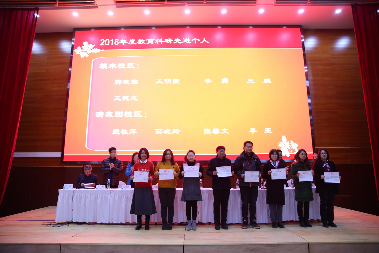 2019年2月23日,和平街一中2018年度“教育科研节”总结表彰会在朝来校区隆重召开。全校六个校区所有领导和老师560余人参加了会议。会议由党总支书记李兵主持。