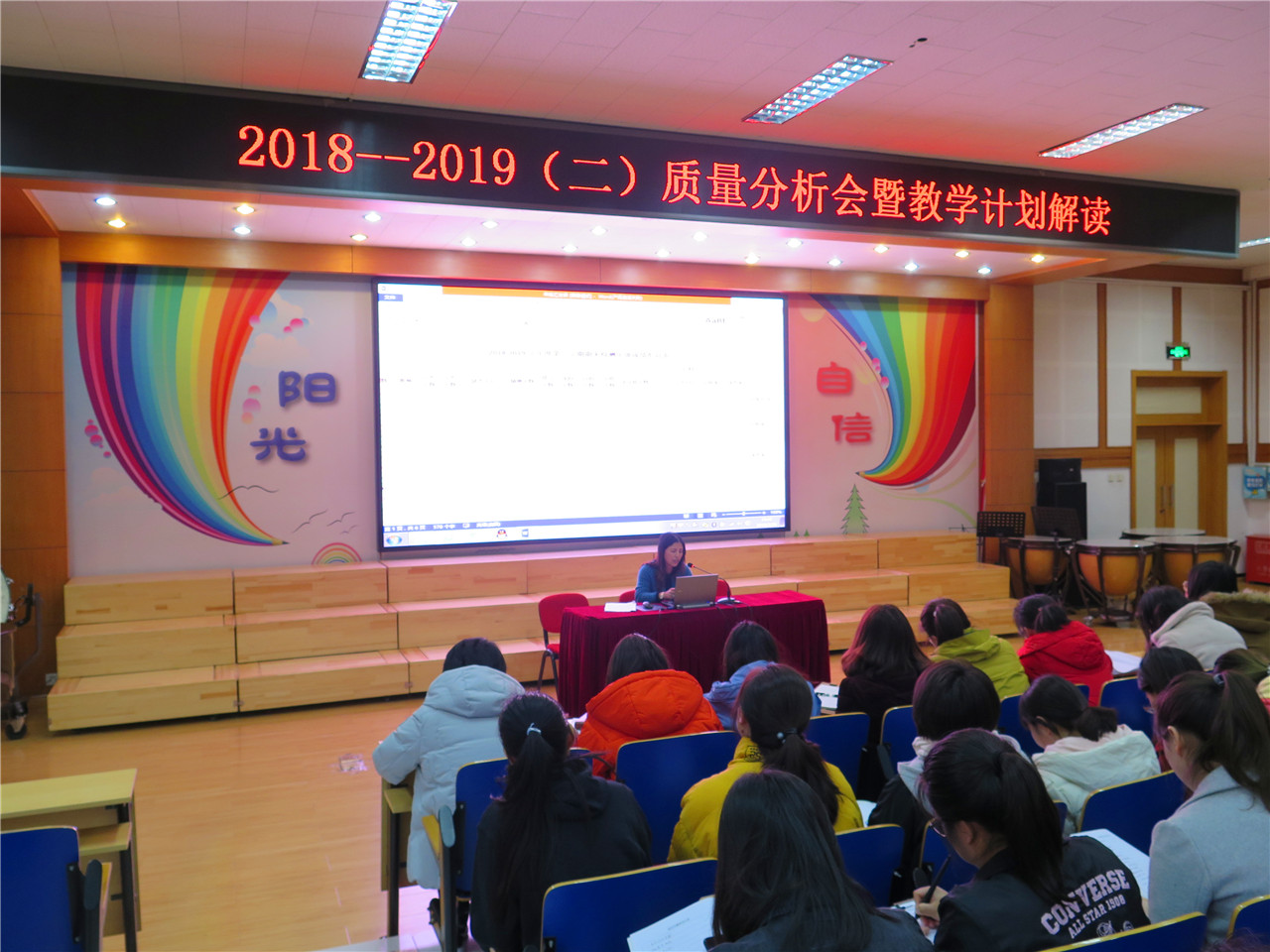 为进一步加强教师的教学质量意识,促进教师间的交流与合作,不断提高教师教学水平和课堂教学效果,2019年2月26日下午,和平街一中小学部在四层阶梯教室召开质量分析会暨教学计划解读会。