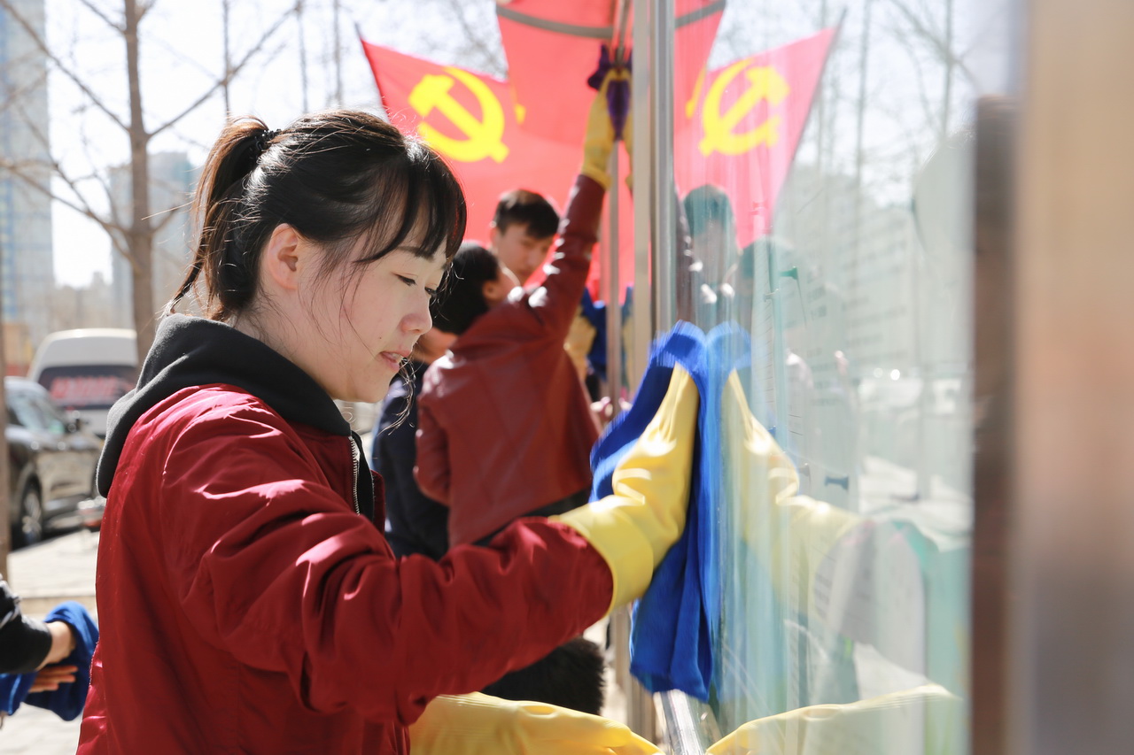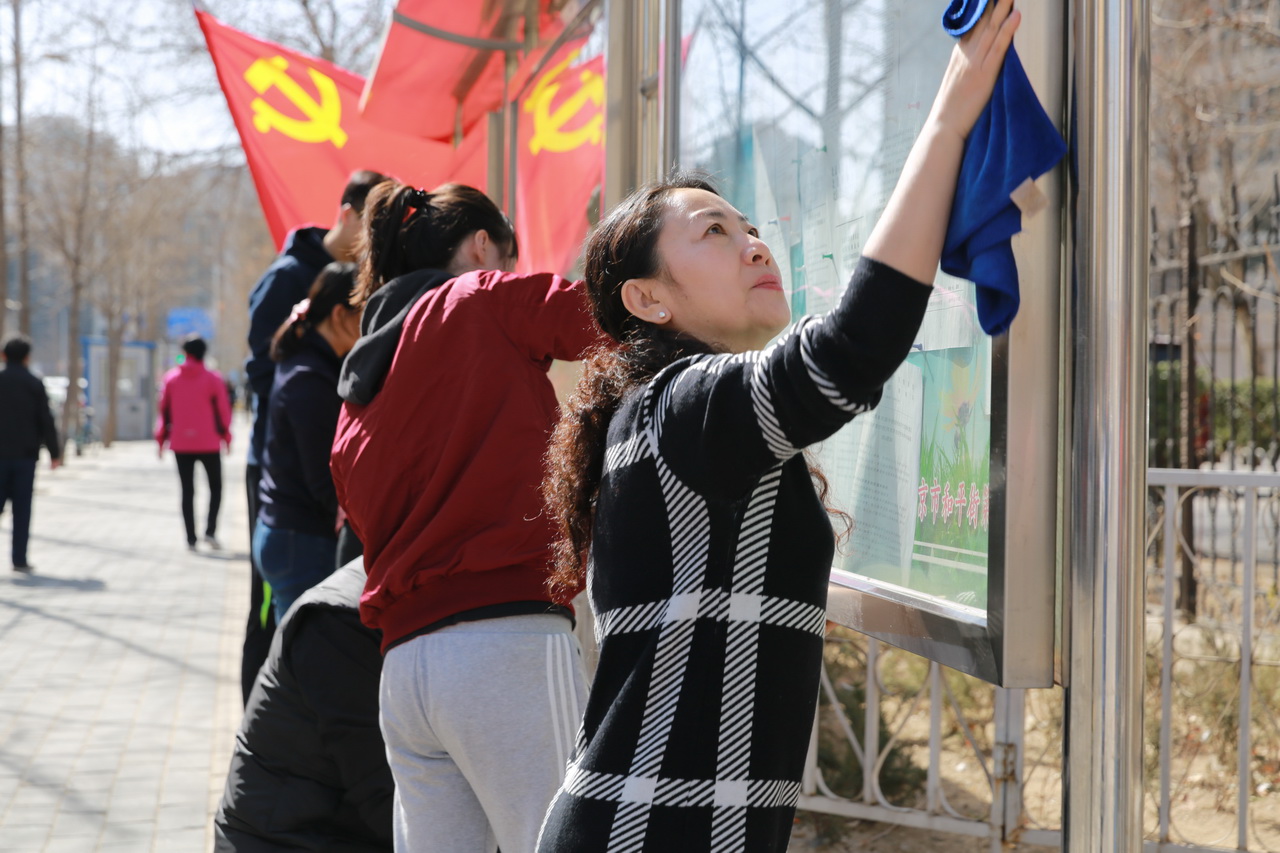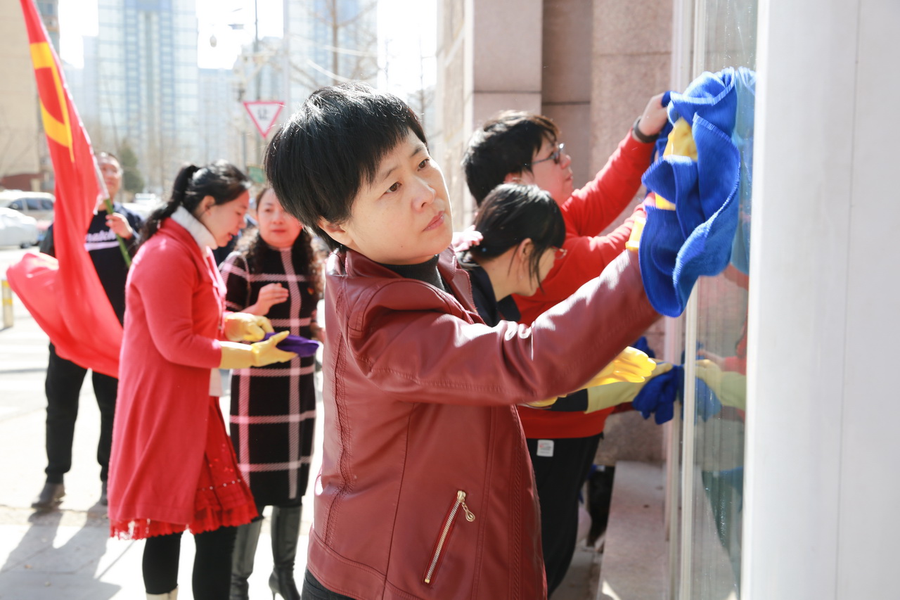 2019年3月5日,正值学雷锋纪念日,和平街一中莲葩园校区行政党小组党员们积极行动起来,开展了美化校园环境,清理卫生死角微公益活动。午餐过后,党员同志们开始行动——擦奖牌、净门窗、清垃圾……服务队伍越来越壮大,其他党小组的党员也纷纷加入,青年团教师们也纷纷加入,积极分子们自愿加入。大家密切配合,紧张有序,全力以赴,干劲十足。在大家的共同努力下,短短40分钟,校园内窗明几净,干净整洁。校园环境扮靓了,党员们脸上也露出了满意的笑容。