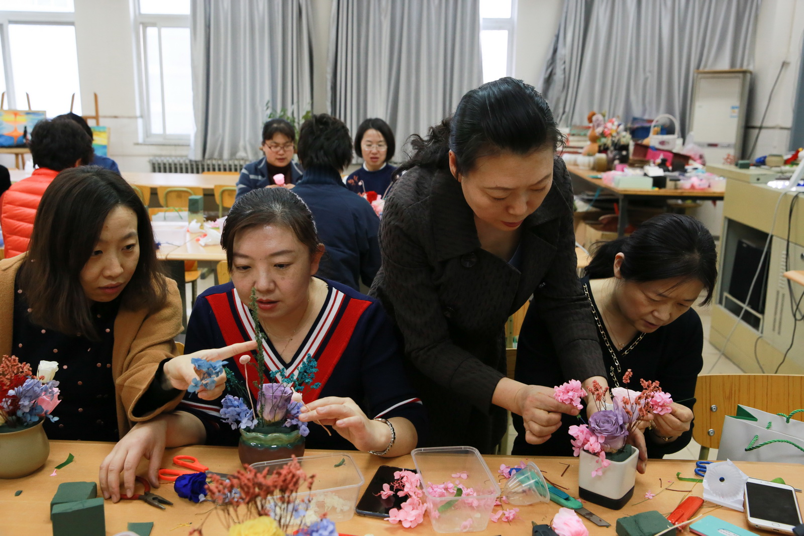 3月7日下午,和平街一中莲葩园校区教工魅力社团烘焙厨房、茗茶社、创美软陶社、永生花社吸引来了平日忙忙碌碌的女教职员工们。