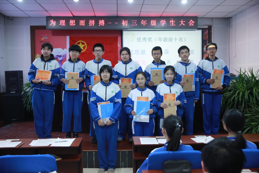 大会主要内容:一、年级组长分析初三上期末成绩并表彰期末优秀学生。根据上期末成绩的地位,让学生树立中考目标,激发了学生的学习动力。二、经验分享。两位优秀学生初三(3)吴思澈和初三(1)安钊旭发言,他们分享了自己的学习经验。吴思澈从听讲习惯、做题习惯和心态的调整等三方面给予了同学们很好的启发。安钊旭从责任感出发,谈到学习是我们初三学子的第一责任,要努力学好并要帮助同学一起锻炼好身体,做一个德智体美劳全面发展的合格初中生。三、最后年级组长总结年级精神:主动用心、不言放弃;努力拼搏,追求卓越;阳光上进,全面发展。并要求初三年级的全体学生和老师做好常规,合作共进,共创佳绩。(和平街教务处黄国会)