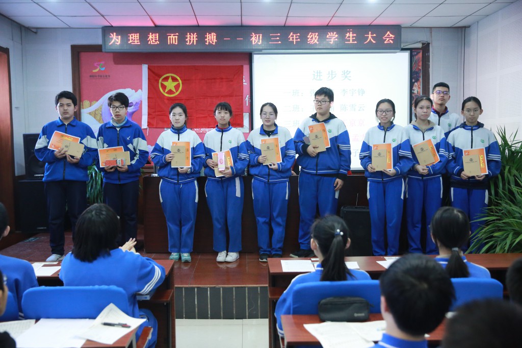 3月6日下午4:00,和平街一中初中校区主题为 “为理想而拼搏”的初三年级学生会在礼堂举行。年级组长余丽蓉老师主持,班主任和教学、德育主管领导参加。