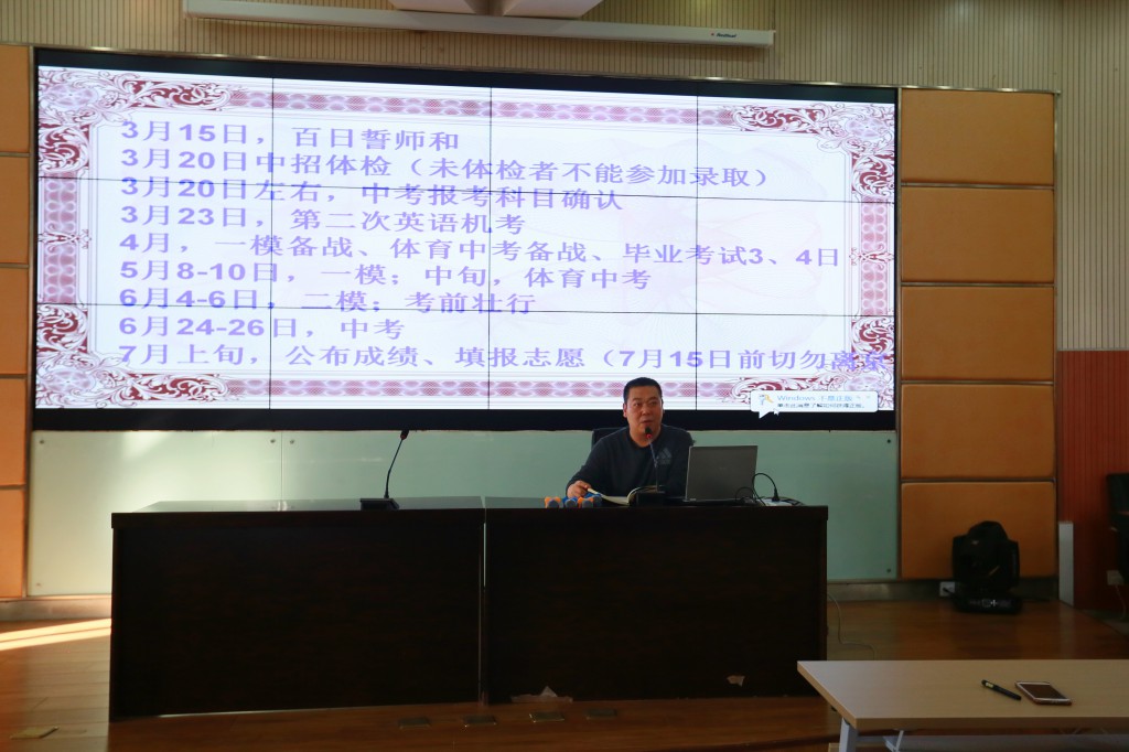 这个学期面临中考,不仅要完成繁重的复习任务,还要经历两次重大的模拟考试,同时也有如中招体检、英语第二次机考等与毕业年级相关的重要活动。郭老师在会上列出本学期的重大活动的时间节点,让同学们明确本学期的重大活动,提前做好计划和准备。