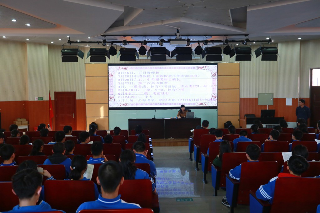 2019年3月5日下午3:00,朝来校区初三年级全体师生170余人在阶梯教室举行新学期的第一次年级大会。