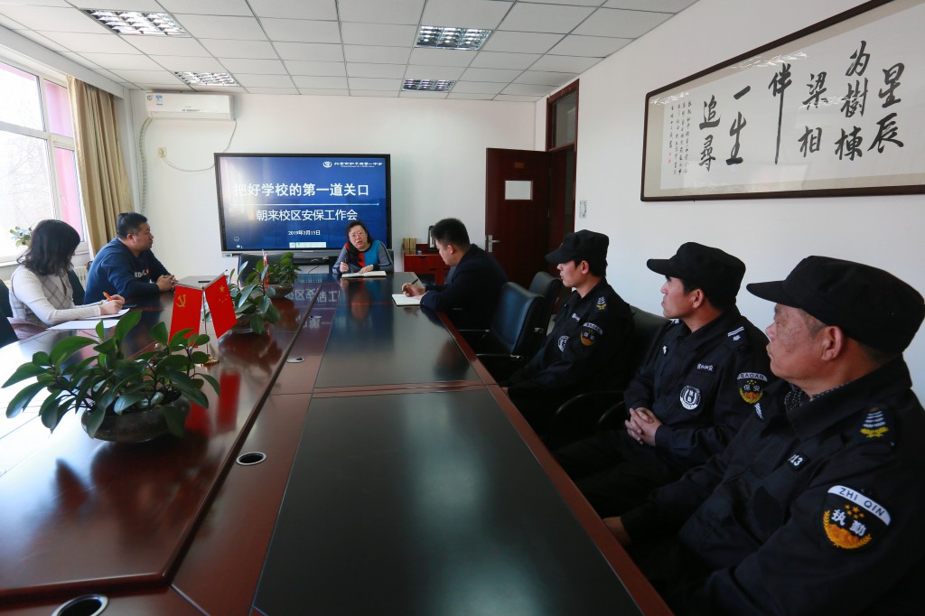 学校门卫是学校安全的第一道防线,也是展示学校形象的第一窗口,为了进一步加强了学校门卫和保安工作人员的责任意识,提升保安人员应急防范处置能力。2019年3月15日,和平街一中朝来校区在二层会议室召开安保工作会。