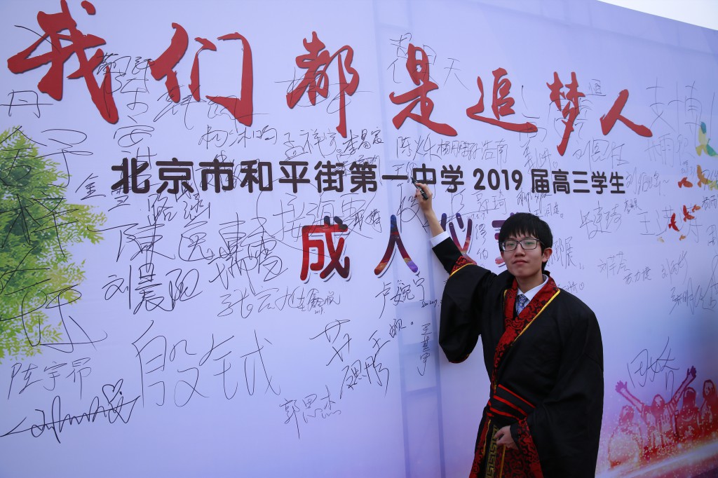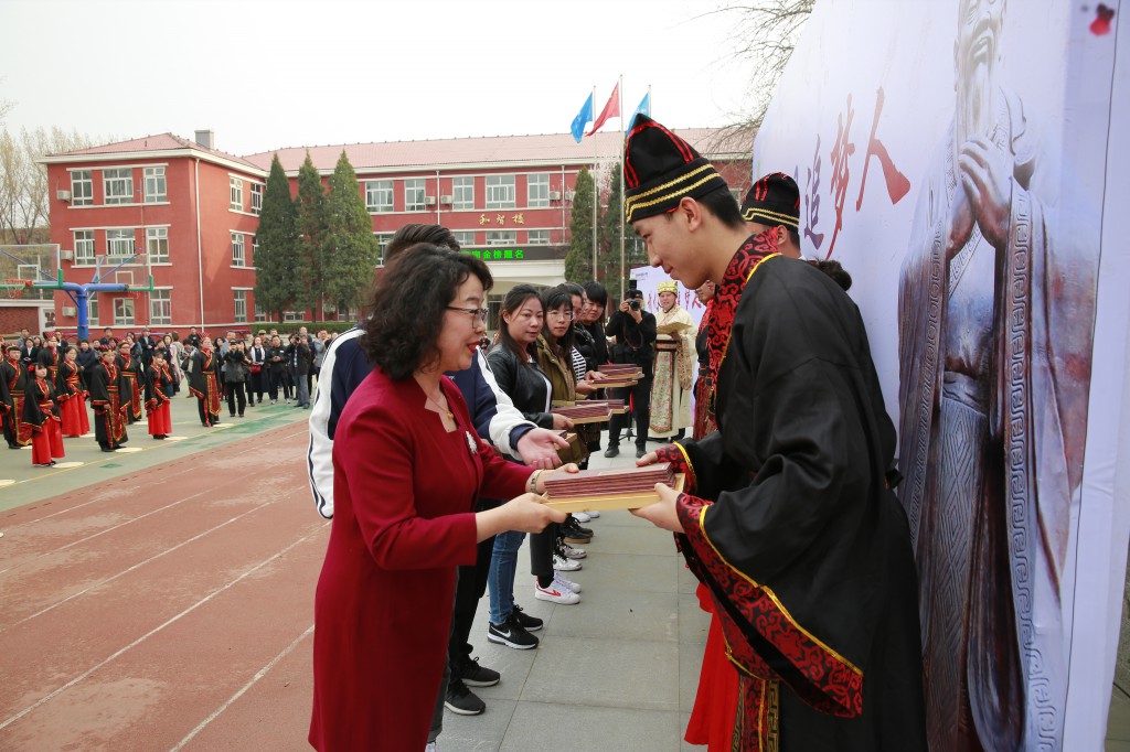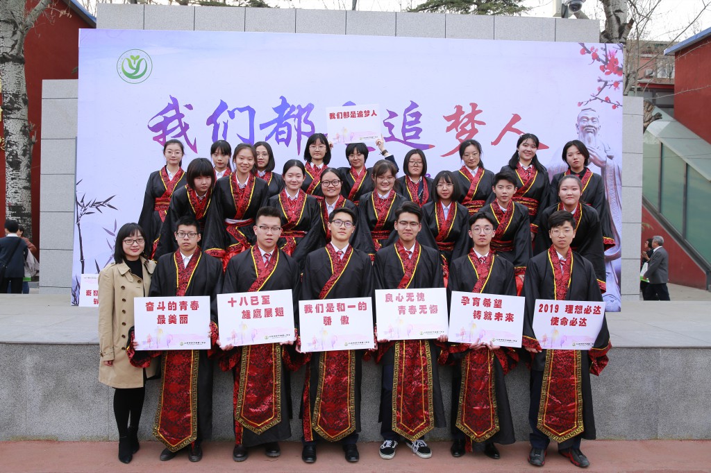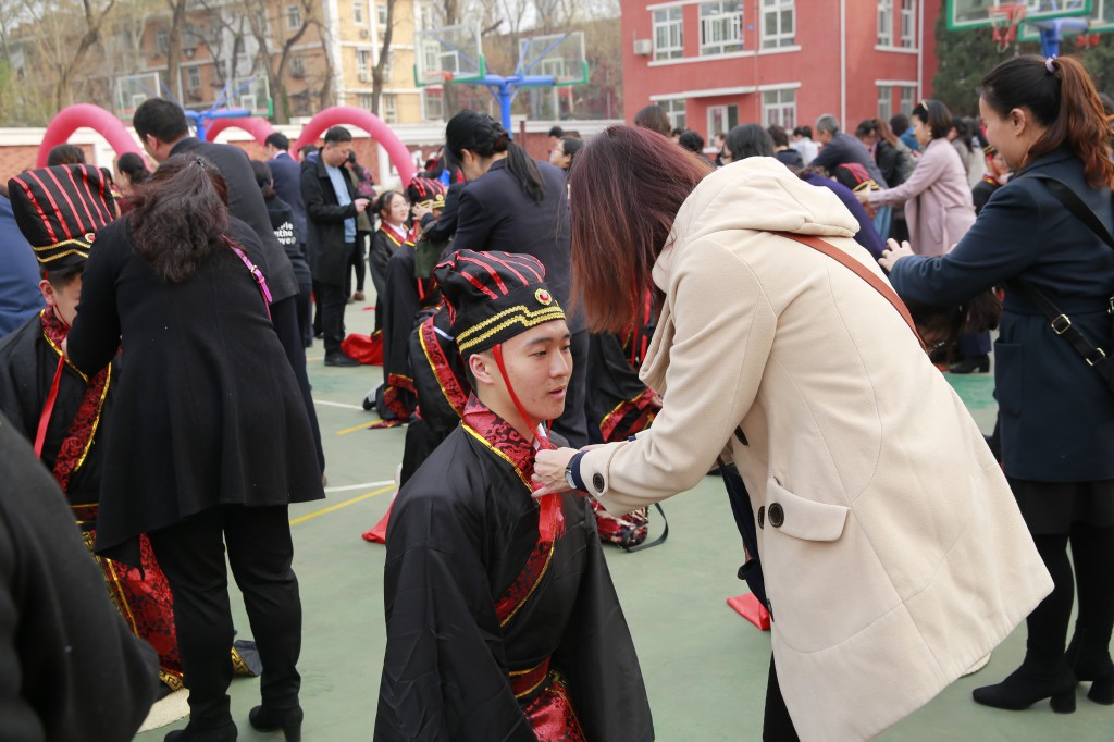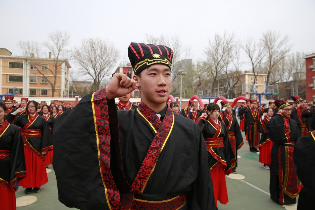 和一校园恬静美好,惬意舒适。200多名高三学子身着汉服齐聚操场,彰显出和一学子自信阳光的精神面貌。在老师、家长、学校领导的共同见证下,全体学生迈过象征着成人的成人门。“成”即“成人”“成才”之意,跨过大成门,意味着从孩子到成人的转变,意味着从此走向更广阔的天地。